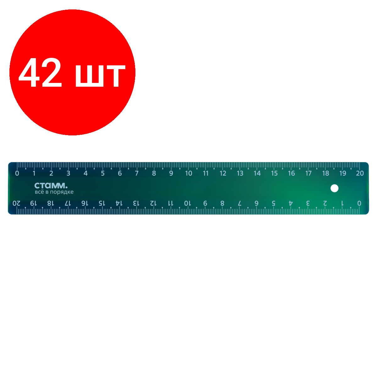 Комплект 42 шт, Линейка 20см СТАММ "Хамелеон", пластиковая, 2 шкалы, зеленый хамелеон, европодвесс информация:
