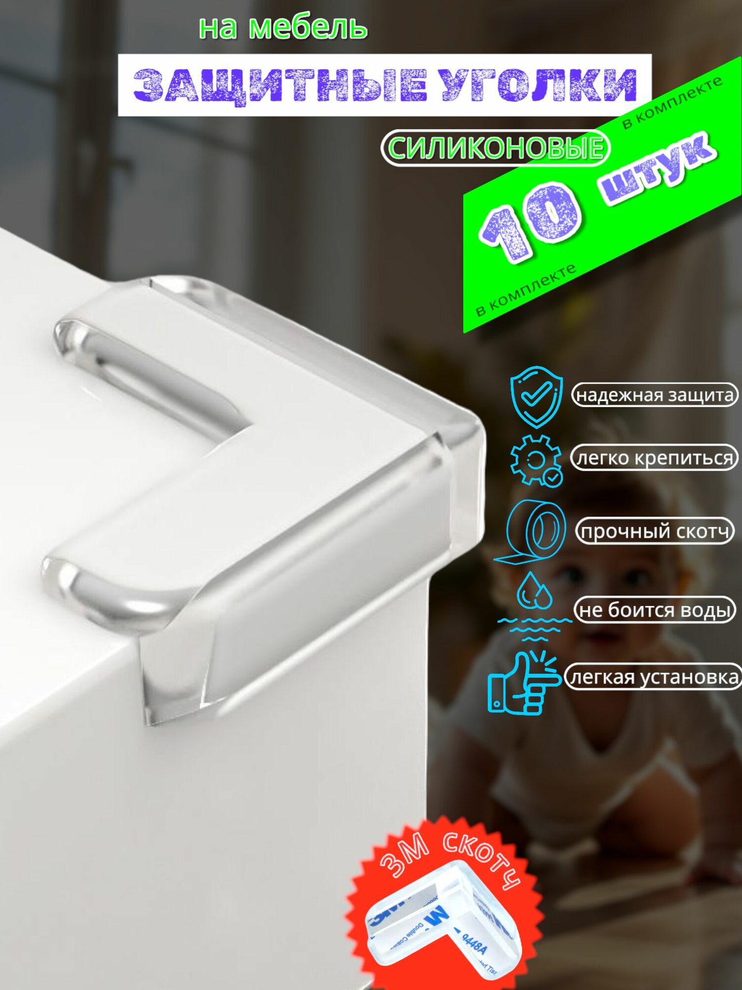Защитные уголки для мебели, защита для детей против ударов, силикон, клейкая основа 3М скотч, бесцветные, 10 штук информация: