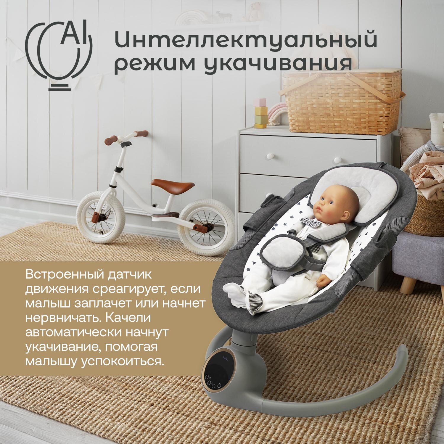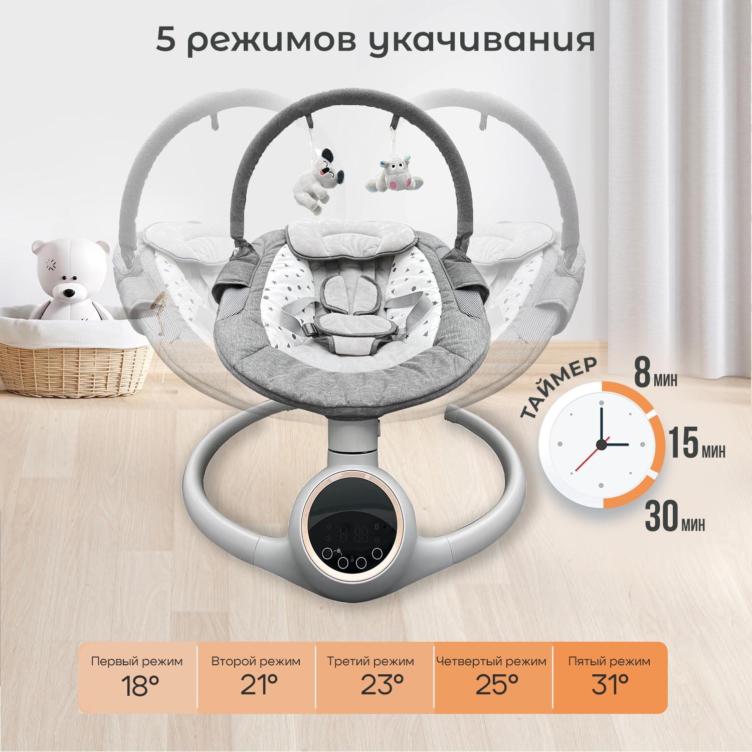 Электрокачели для новорожденного кресло качалка новогодние подарки, для малыша до 12 кг, с пультом управления, серый