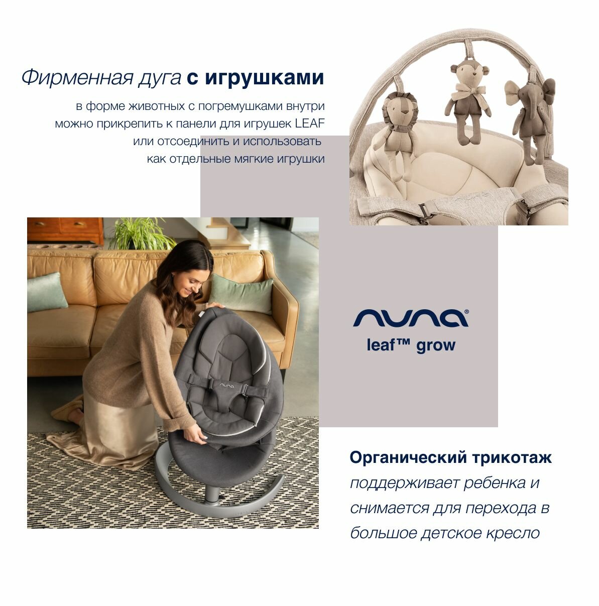 Шезлонг детский Nuna Leaf Grow c дугой с игрушками Sand, светло-бежевый информация: