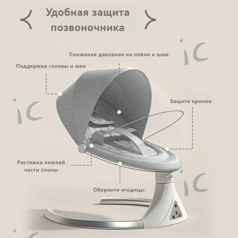 Качели электронные детские swing от 0-3, музыкальный серый 14 472 ₽