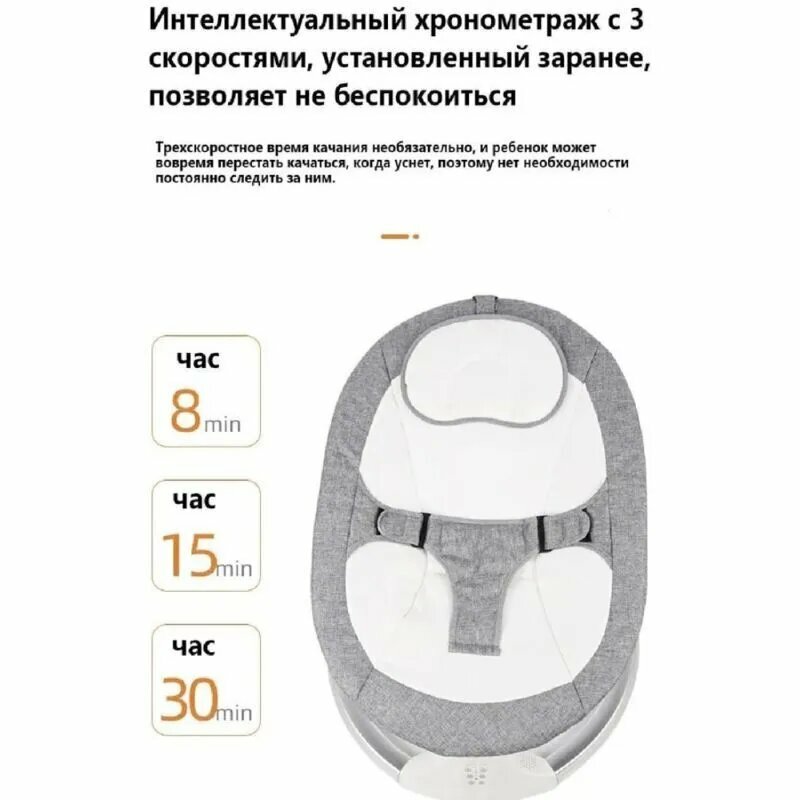 Электрокачели для новорожденного кресло качалка новогодние подарки, для малыша до 12 кг, с пультом управления, серый