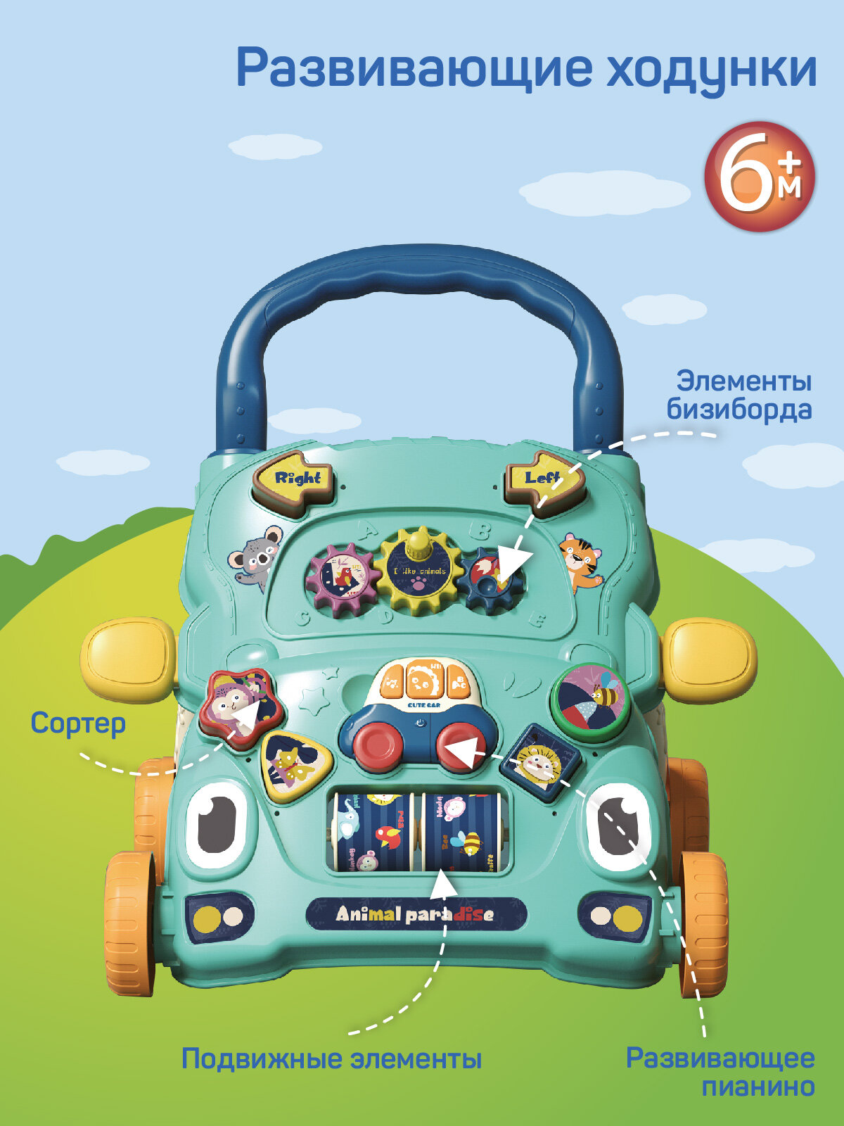 10 цен на Развивающие музыкальные ходунки, каталка, пианино/сортер/элементы бизиборда, свет, звук, JB0334329