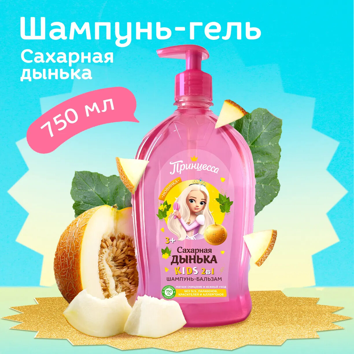 Детский шампунь-бальзам Принцесса 2в1 Сахарная дынька, 750мл информация: