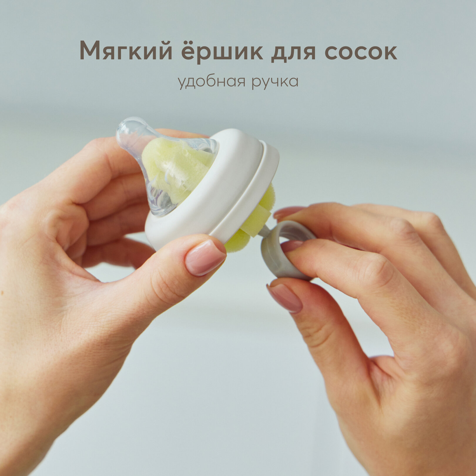 Отзывы на 11030, Щетка для бутылочек Happy Baby, набор щеток, ершик, принадлежности для мытья детской посуды, 2в1, серые