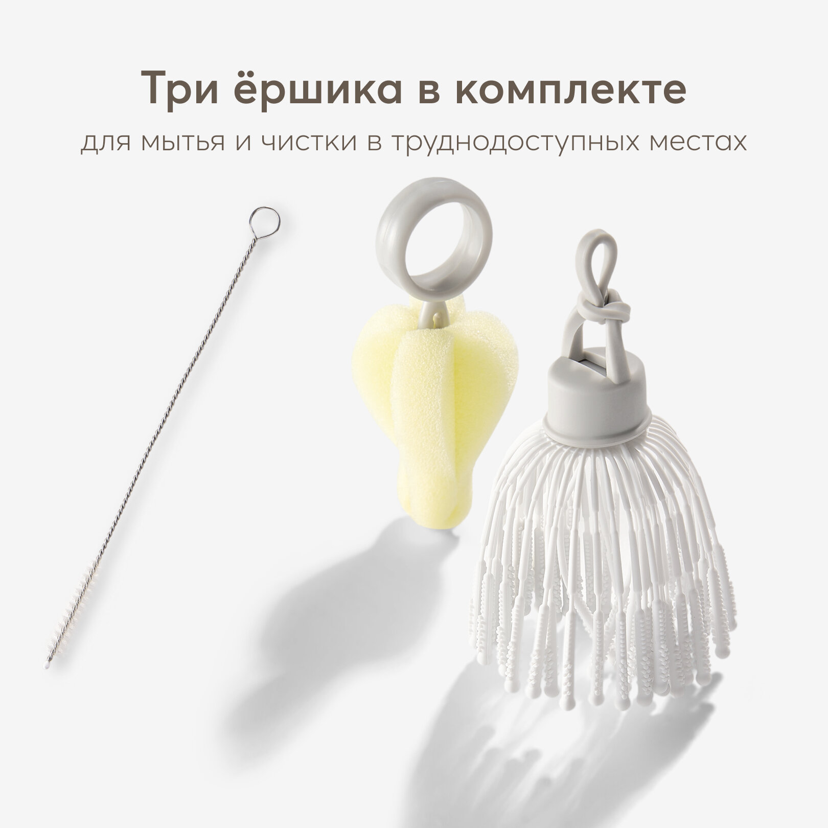 10 цен на 11030, Щетка для бутылочек Happy Baby, набор щеток, ершик, принадлежности для мытья детской посуды, 2в1, серые
