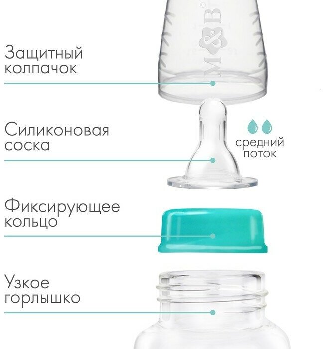 10 цен на Бутылочка для кормления, классическое горло, 250 мл, от 3 мес, цилиндр, цвет бирюзовый, 9291669