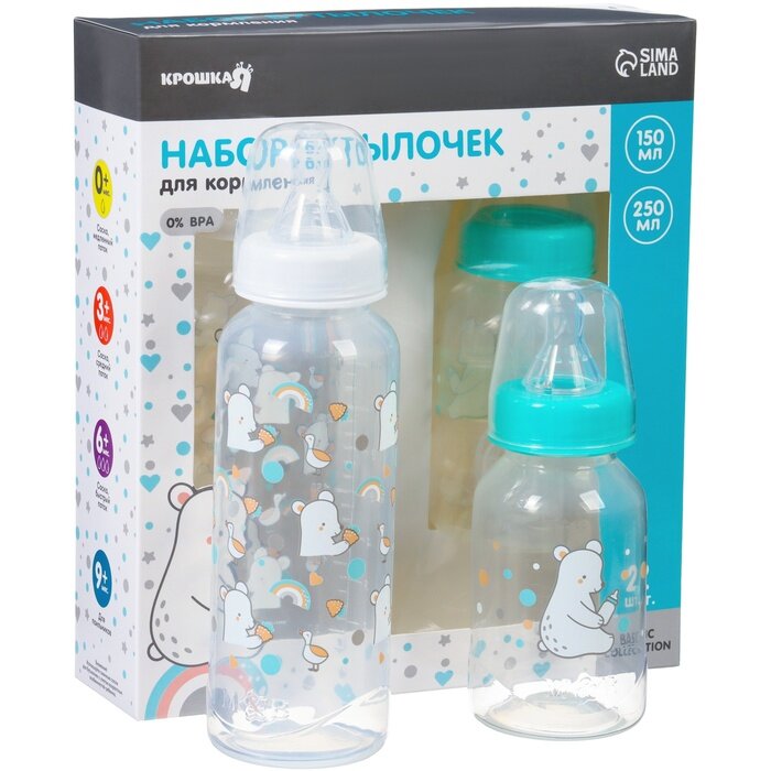 Набор бутылочек для кормления «Медвежонок» 150 и 250 мл, серия Basic, прямые, микс, 9900496 информация: