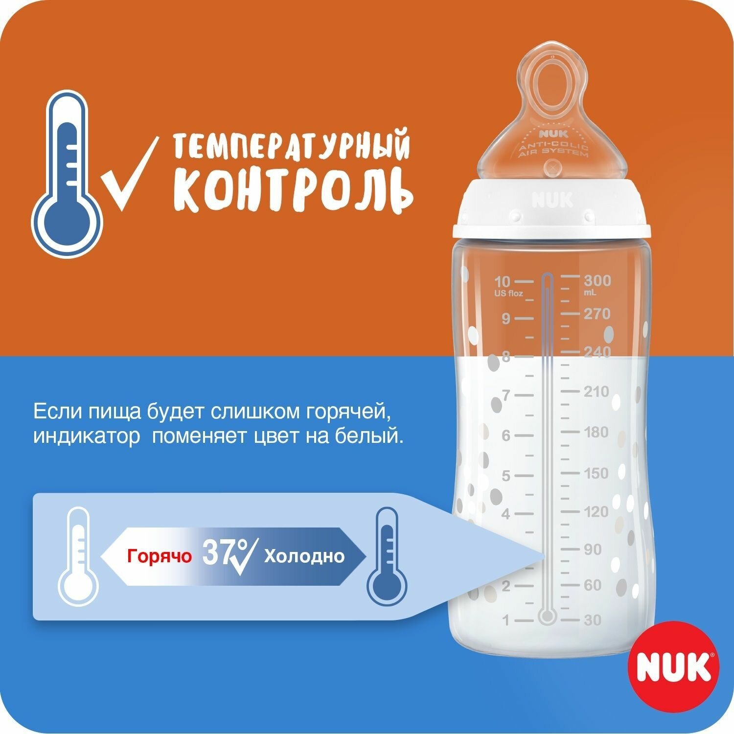 NUK FC+ Бутылочка из ПП с ИТ 300 мл с силиконовой соской с отверстием М, 0-6 месяцев информация: