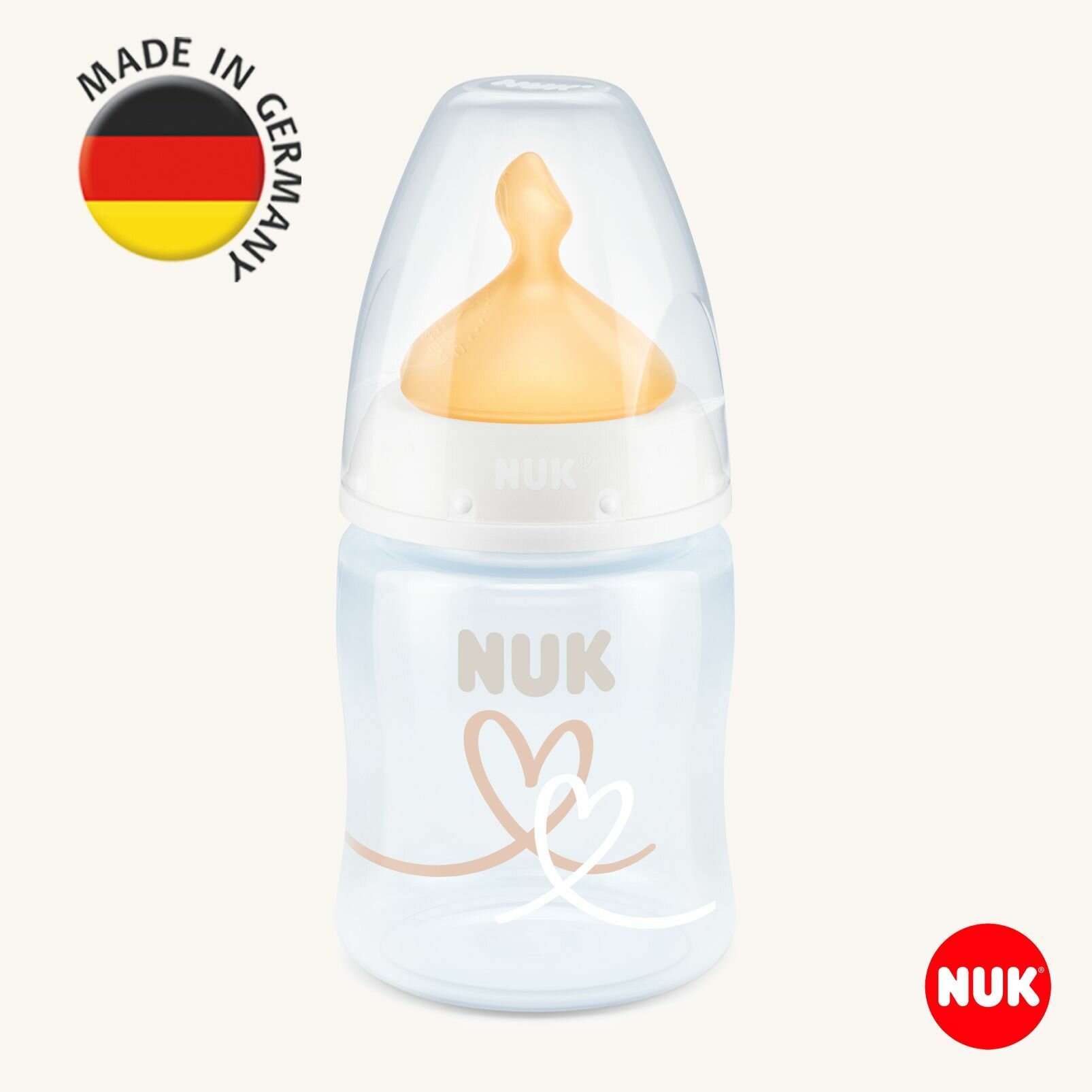 NUK FC+ Бутылочка из полипропилена с индикатором температуры 150 мл с соской из латекса с отверстием М, 0-6 месяцев информация: