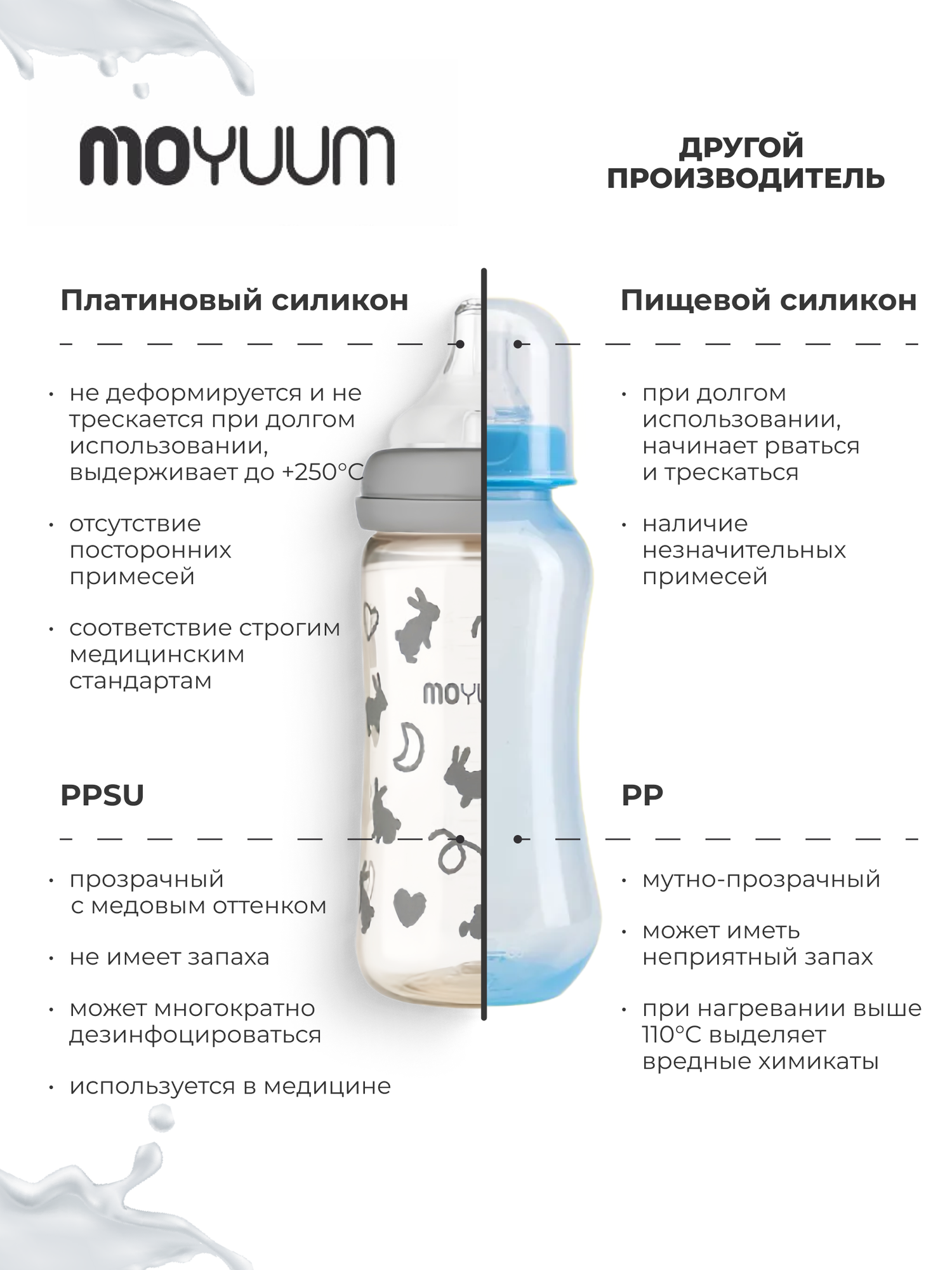 Отзывы на Антиколиковая бутылочка детская Moyuum "Зайчик" для новорожденных, 0+ мес. силиконовая соска, 270мл