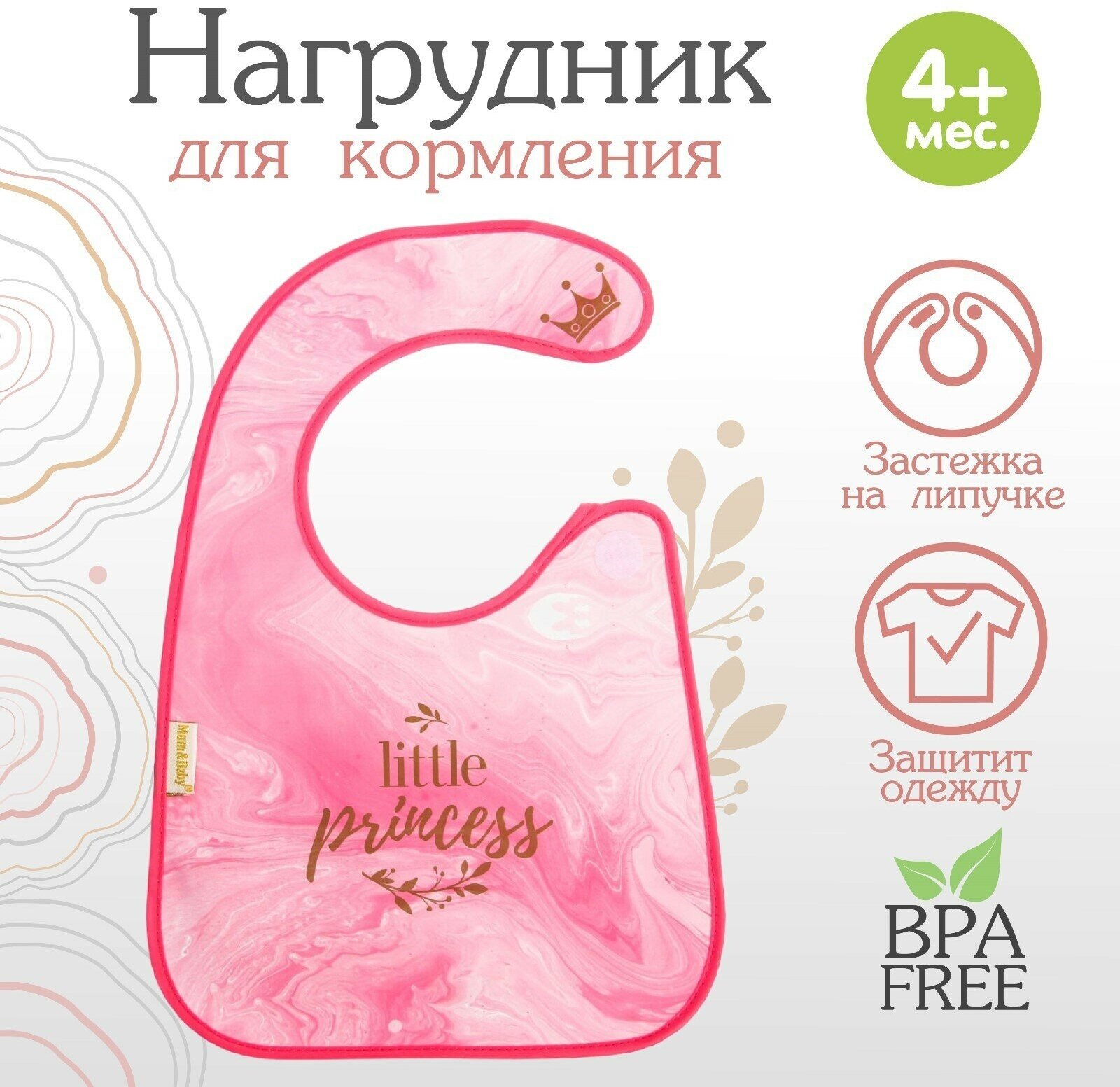 10 цен на Нагрудник для кормления «Little princess» непромокаемый на липучке, с карманом, 5517451
