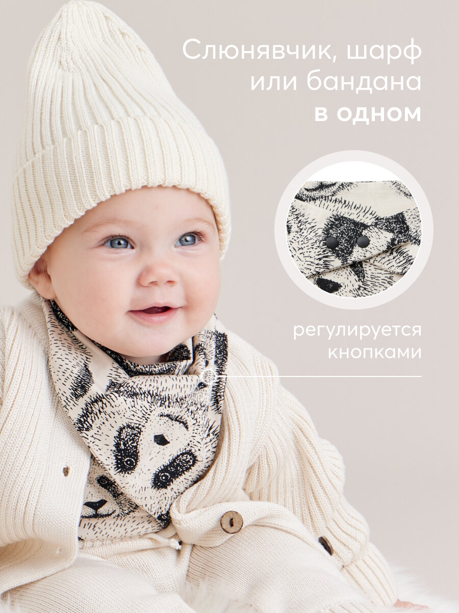 10 цен на 88538, Нагрудный фартук детский Happy Baby, слюнявчик, шарф, бандана для новорожденных, белый с пандами