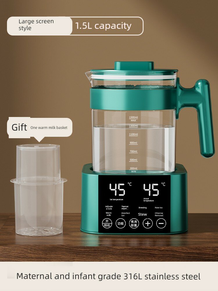 10 цен на Детский чайник с постоянной температурой 1.5л, темно-зеленый, большой экран, нагревательный элемент 316L + корзина для подогрева молока