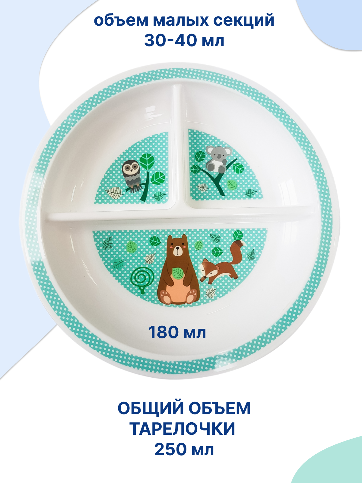 Тарелочка секционная для кормления детей от Uviton с рисунком информация:
