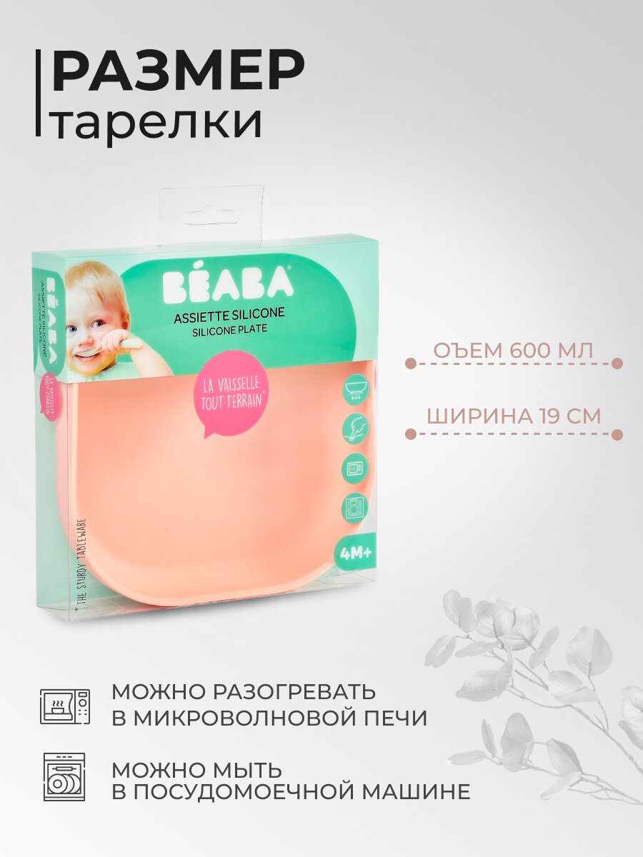 10 цен на Тарелка на присоске детская Beaba, силиконовая тарелка для кормления и прикорма малышей с 4 месяцев, розовый