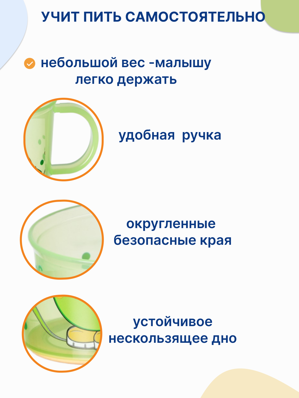 Кружка детская пластиковая противоскользящая 200 мл, зеленая информация:
