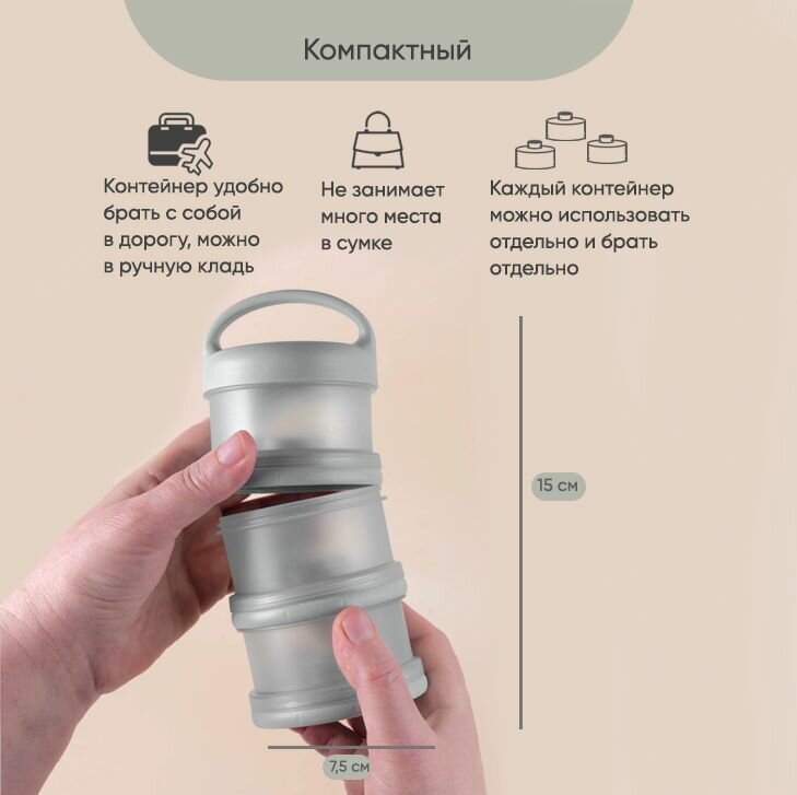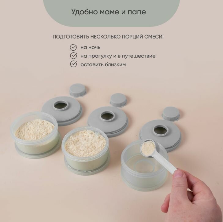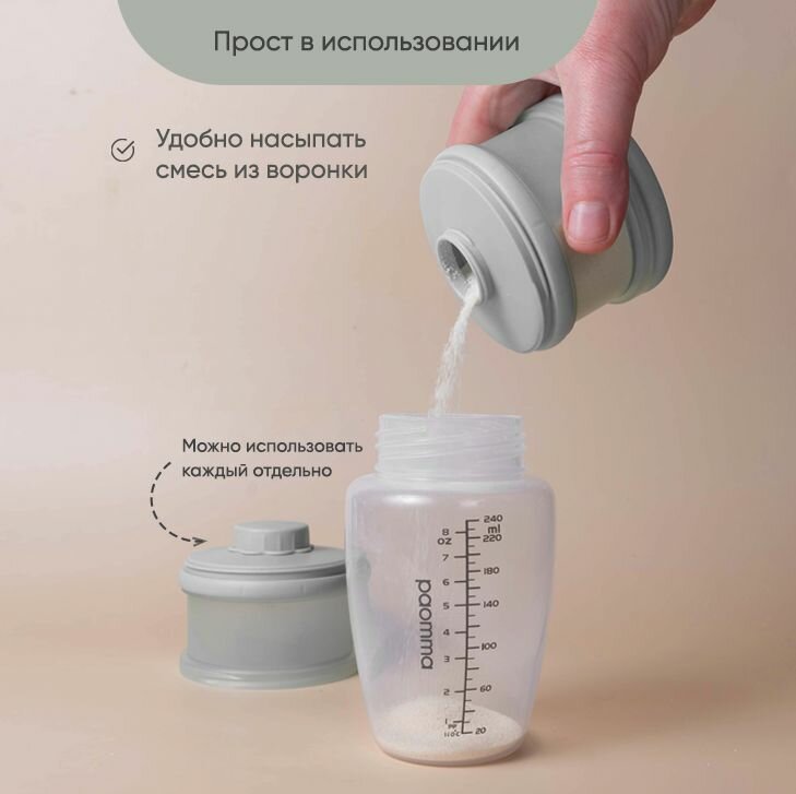 Отзывы на Контейнер для детской смеси Paomma, пластик, светло-серый, 270мл, с нескользящим покрытием