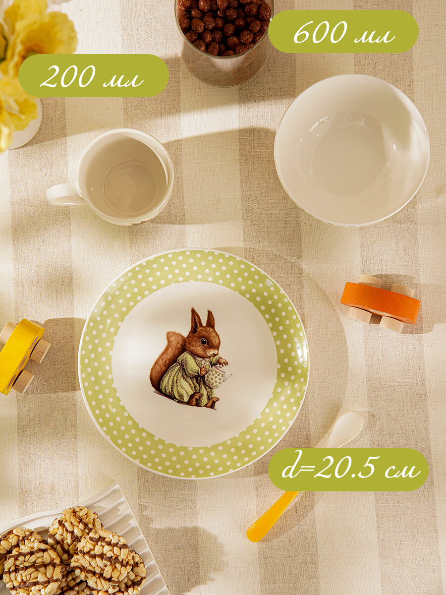 Набор детской посуды 3 предмета Доляна "Белочка" кружка, миска, тарелка информация: