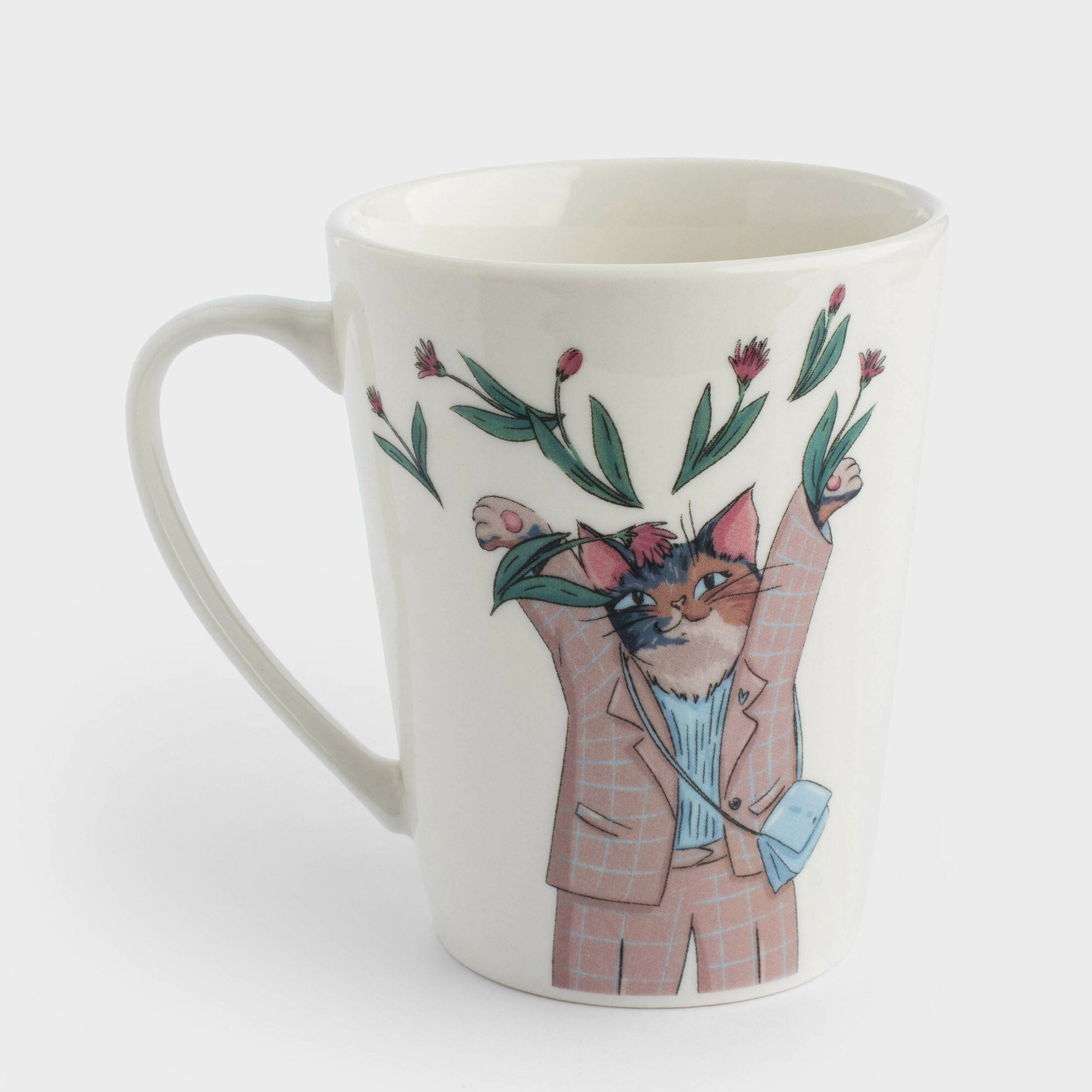 10 цен на Кружка, 420 мл, фарфор N, белая, Кот с цветами, Cat flower