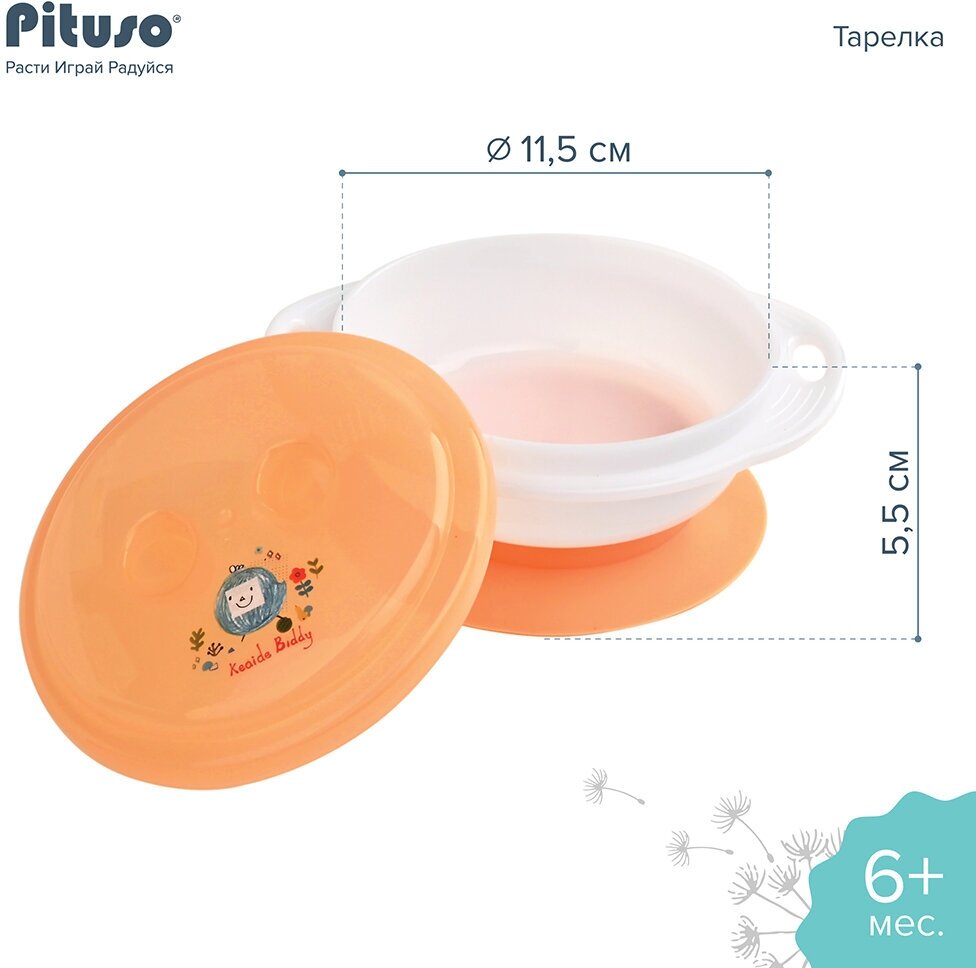 Тарелка детская Pituso на присоске с крышкой 270 мл Orange/оранжевый информация: