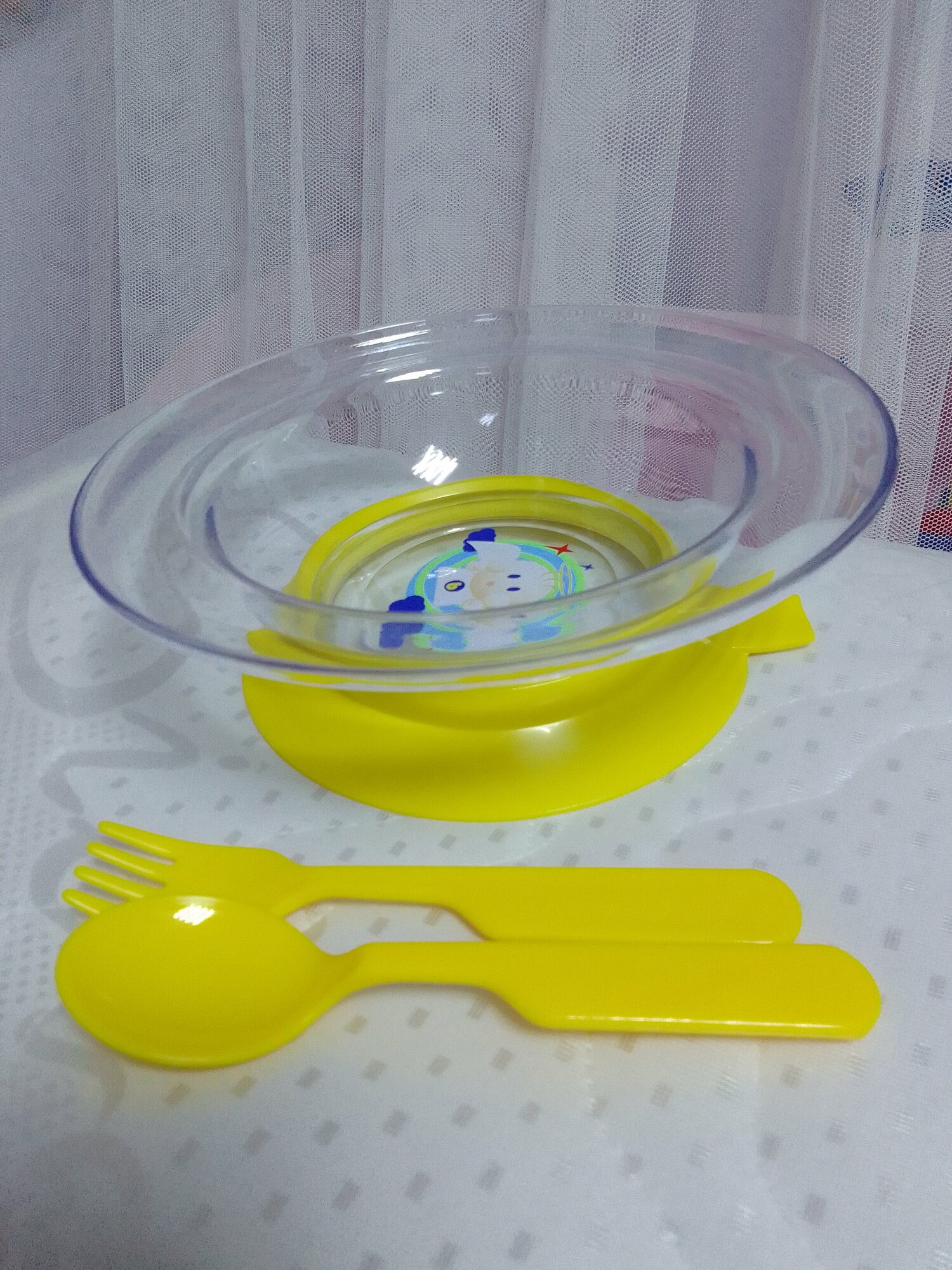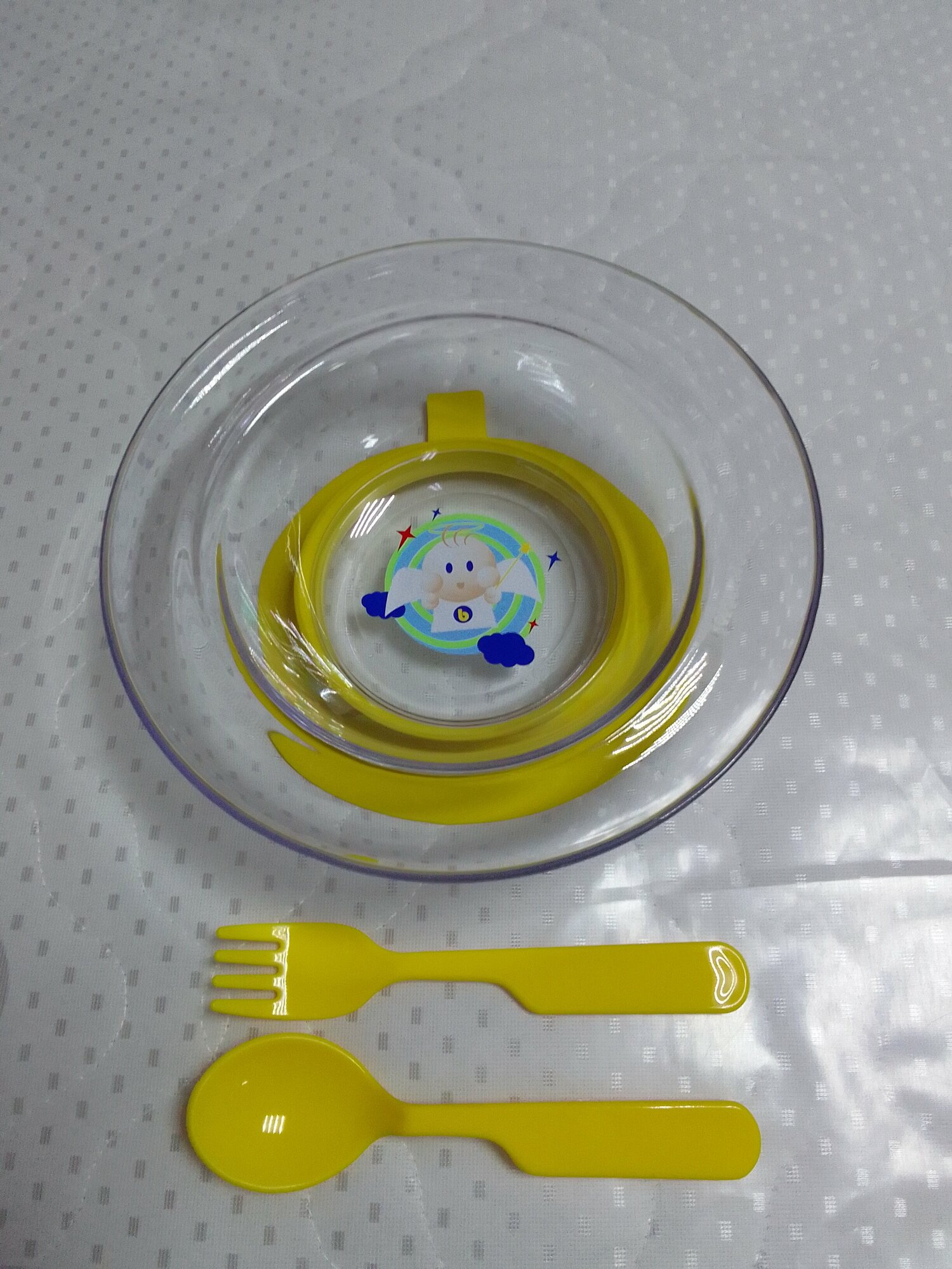 Детский набор посуды для кормления (тарелка, вилка и ложка) 2817т прозрачный/желтый Т информация: