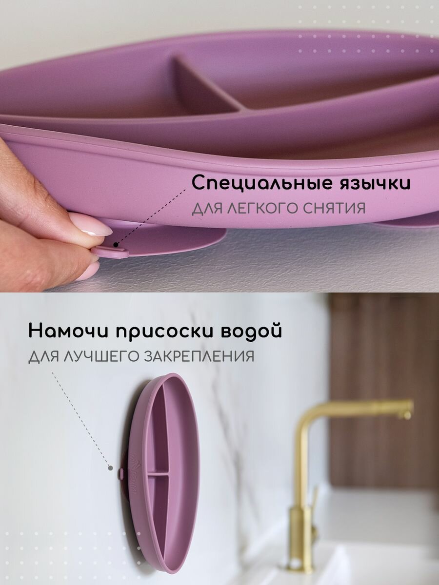 Силиконовая секционная тарелка для кормления Miyoumi, на присоске информация:
