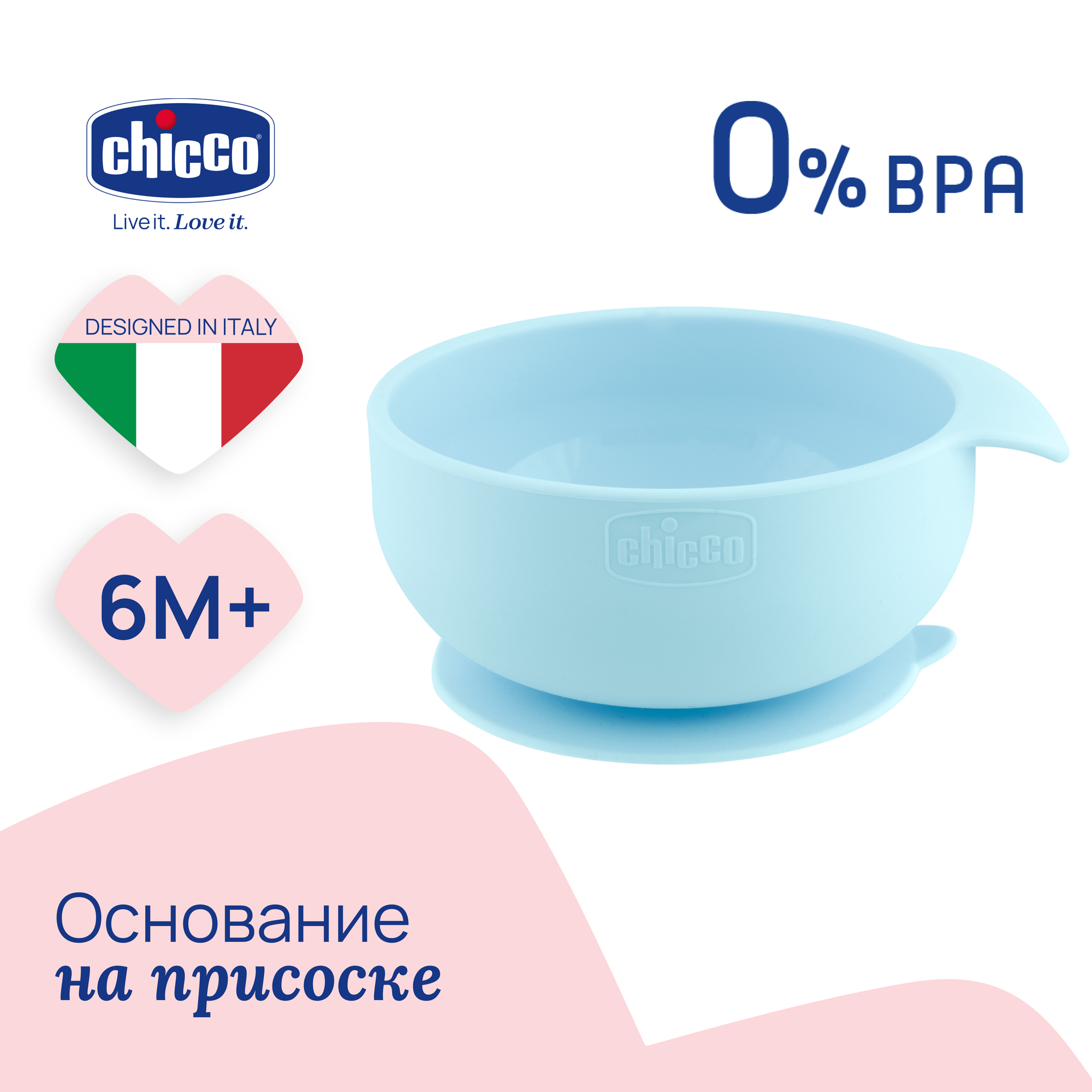 10 цен на Тарелка детская посуда силиконовая на присоске для мальчика, голубая, Chicco, 6м+