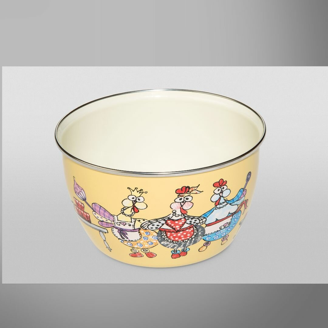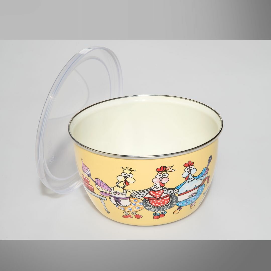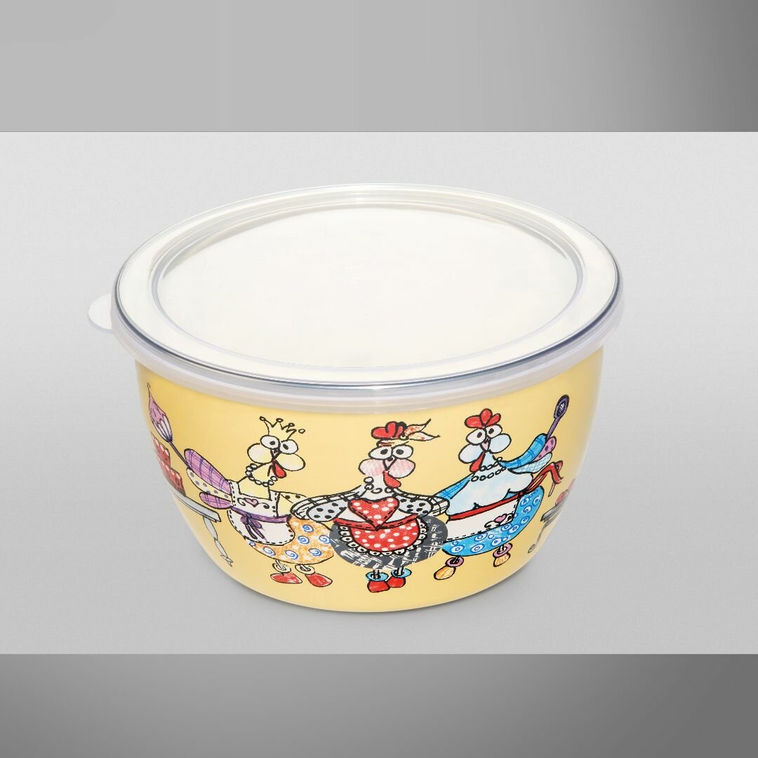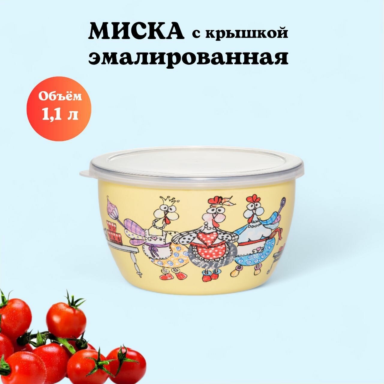 Миска эмалированная с пластиковой крышкой, 1.1 л, Куриный переполох информация: