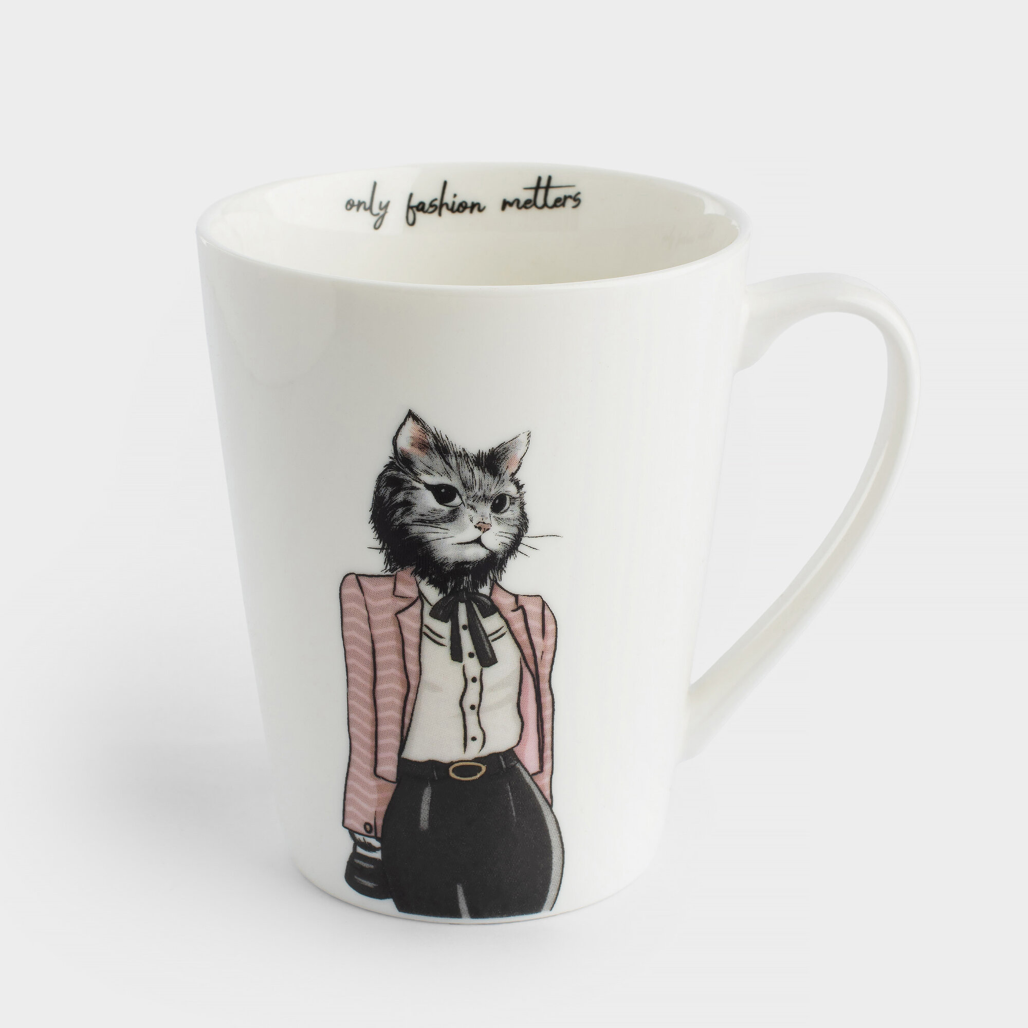 Кружка, 420 мл, фарфор N, белая, Кошка в костюме, On style информация: