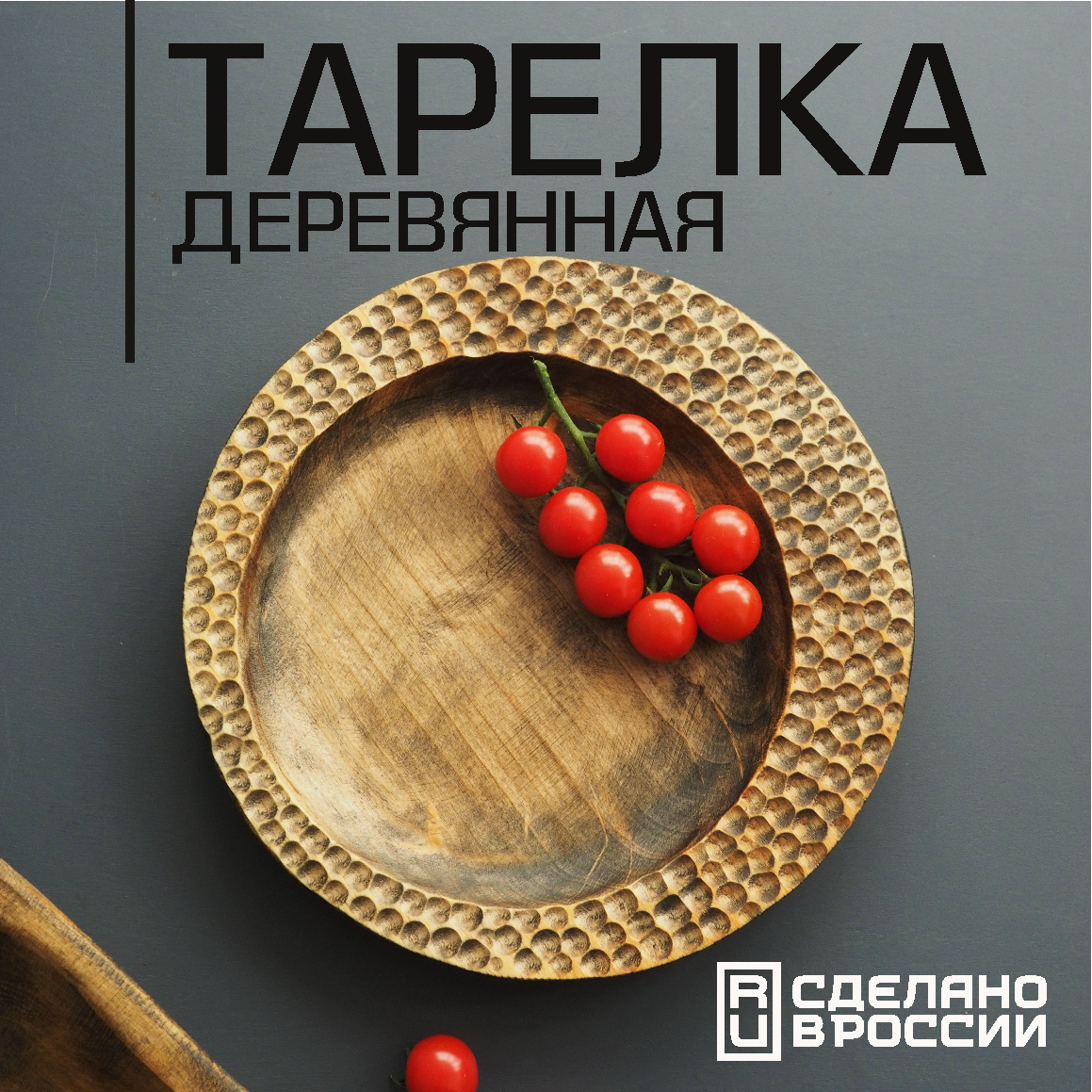 Круглая резная плоская деревянная тарелка для сервировки стола информация: