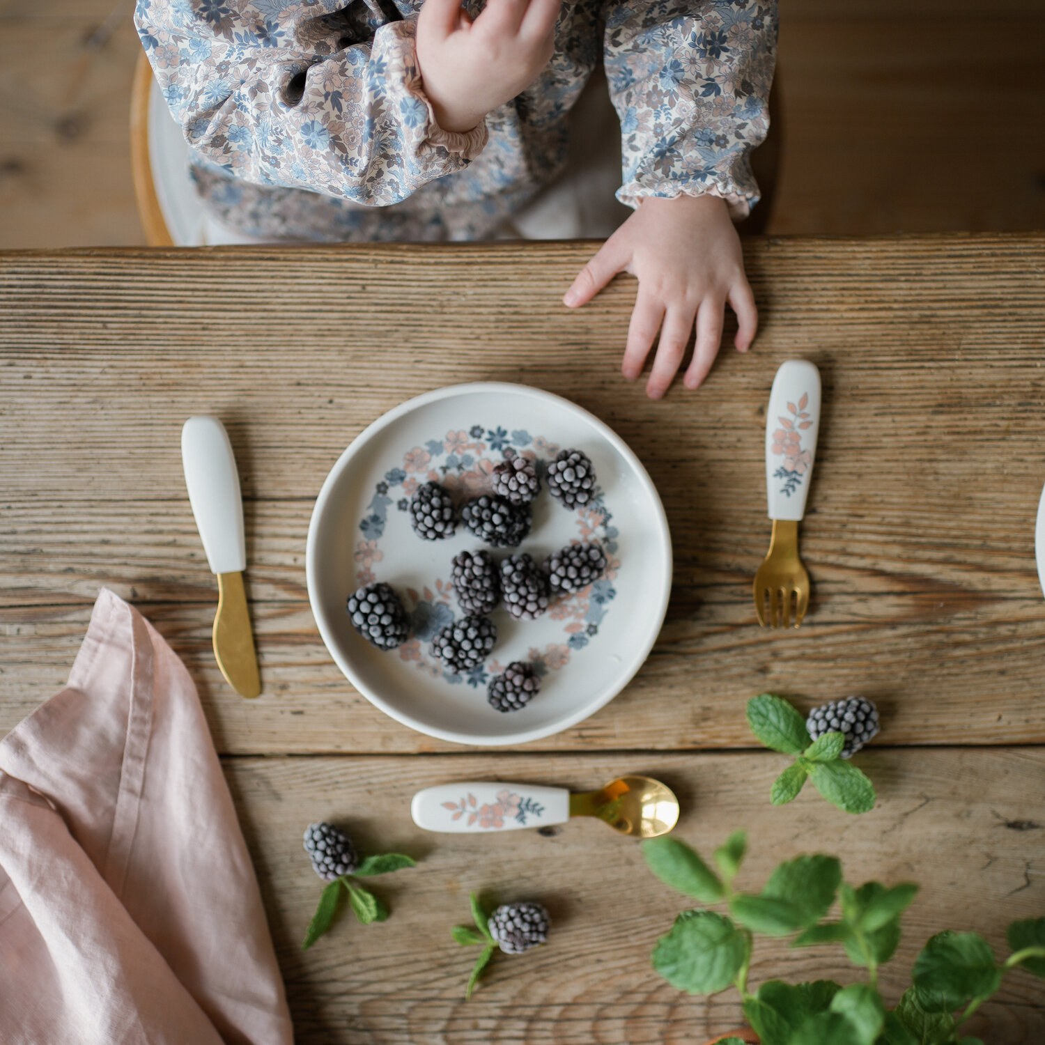 Набор посуды для кормления силиконовый - тарелка, вилка, нож Elodie Blue Garden информация: