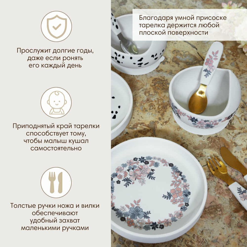 10 цен на Набор посуды для кормления силиконовый - тарелка, вилка, нож Elodie Blue Garden
