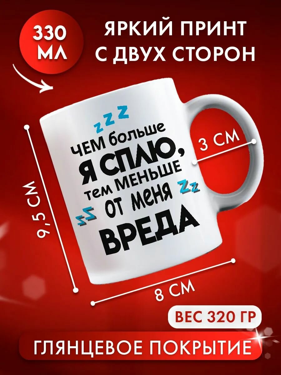 Кружка с принтом чем больше я сплю, тем меньше от меня вреда информация: