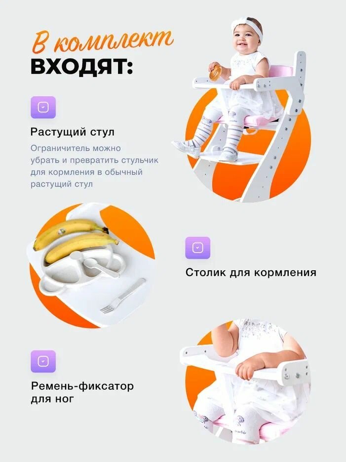 Растущий стул для детей Klikkin, стульчик для кормления информация: