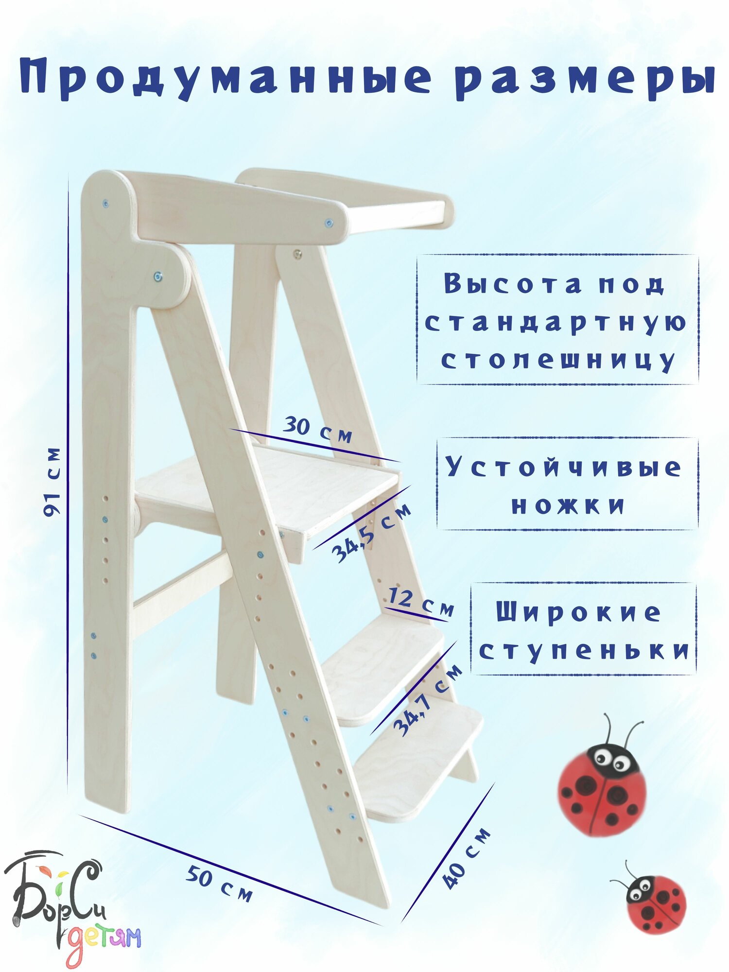 Башня помощника Монтессори, растущий стул-стремянка (без покрытия) информация: