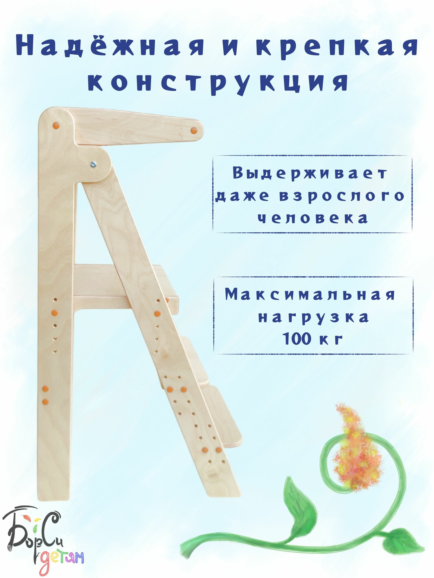 Башня помощника Монтессори, растущий стул-стремянка (прозрачный лак) информация: