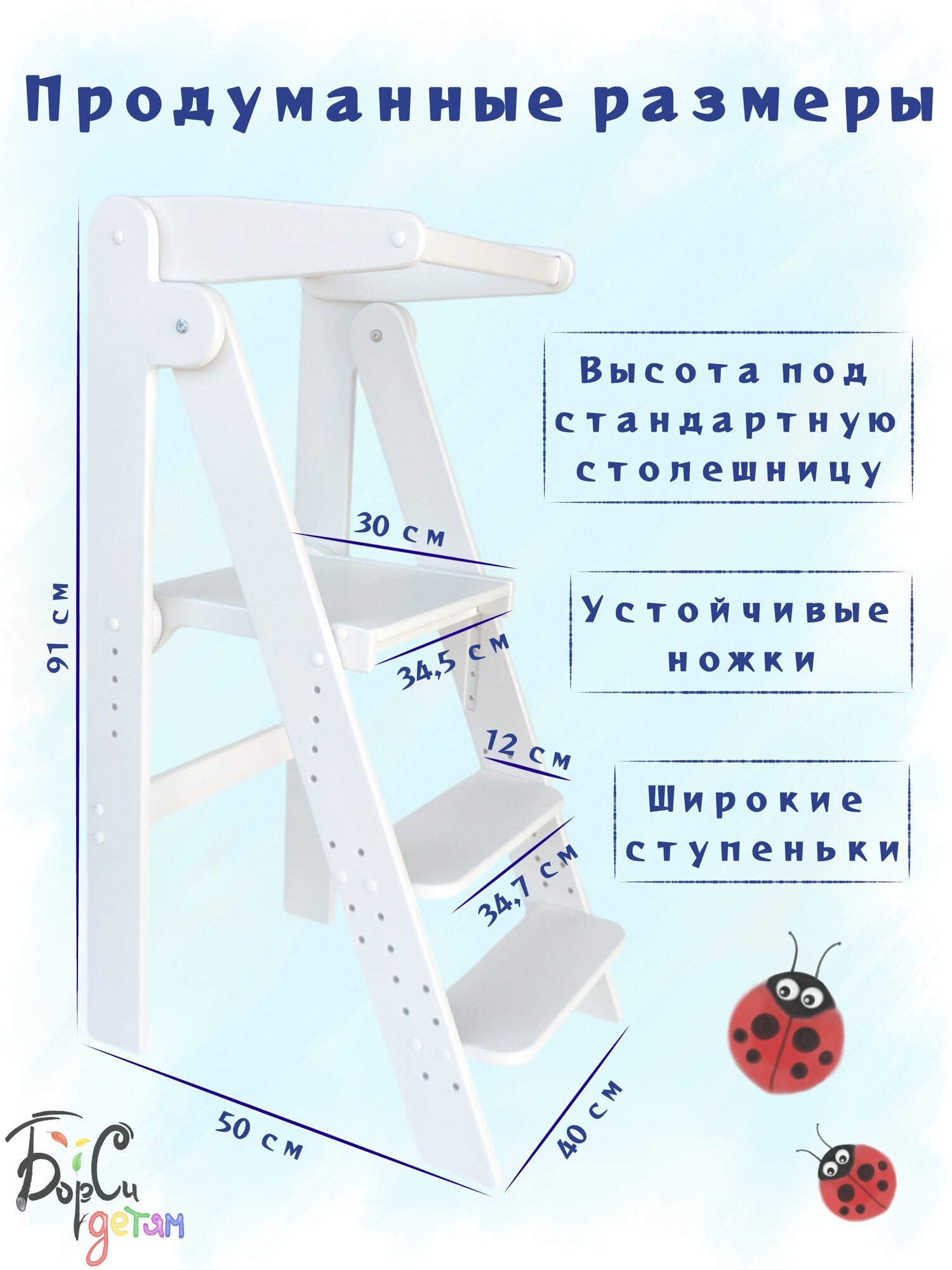 Башня помощника Монтессори, растущий стул-стремянка (белая эмаль) информация: