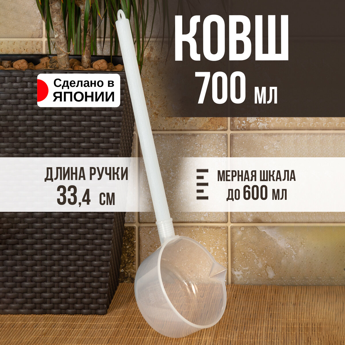 Ковш для бани и купания пластиковый с длинной ручкой 700 мл 46х12,6х7 см Nakaya информация: