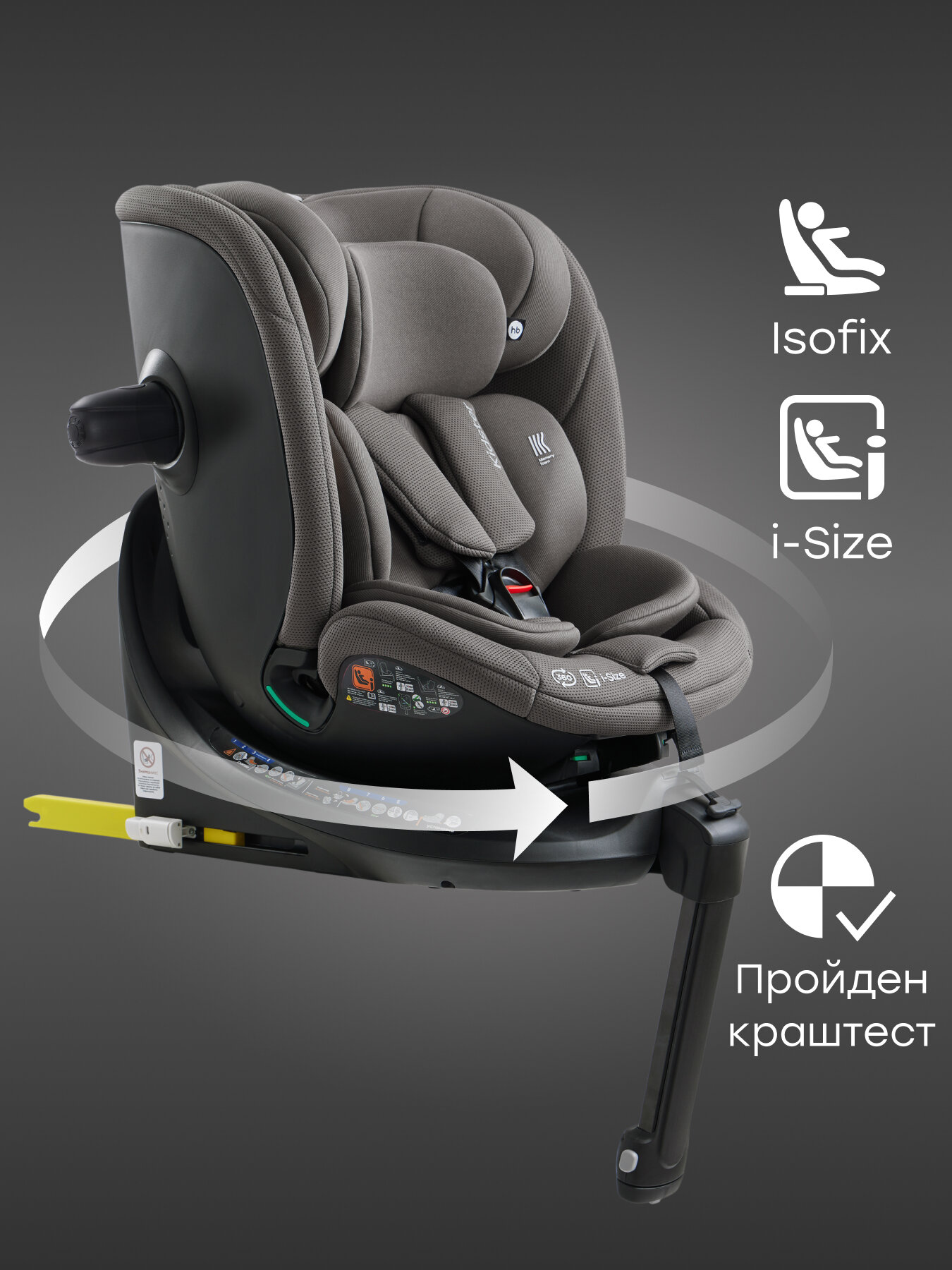 Автокресло детское поворотное на 360, Kidster Happy Baby, группа 0+/1/2/3 (до 36 кг), крепление isofix, темно-серый информация: