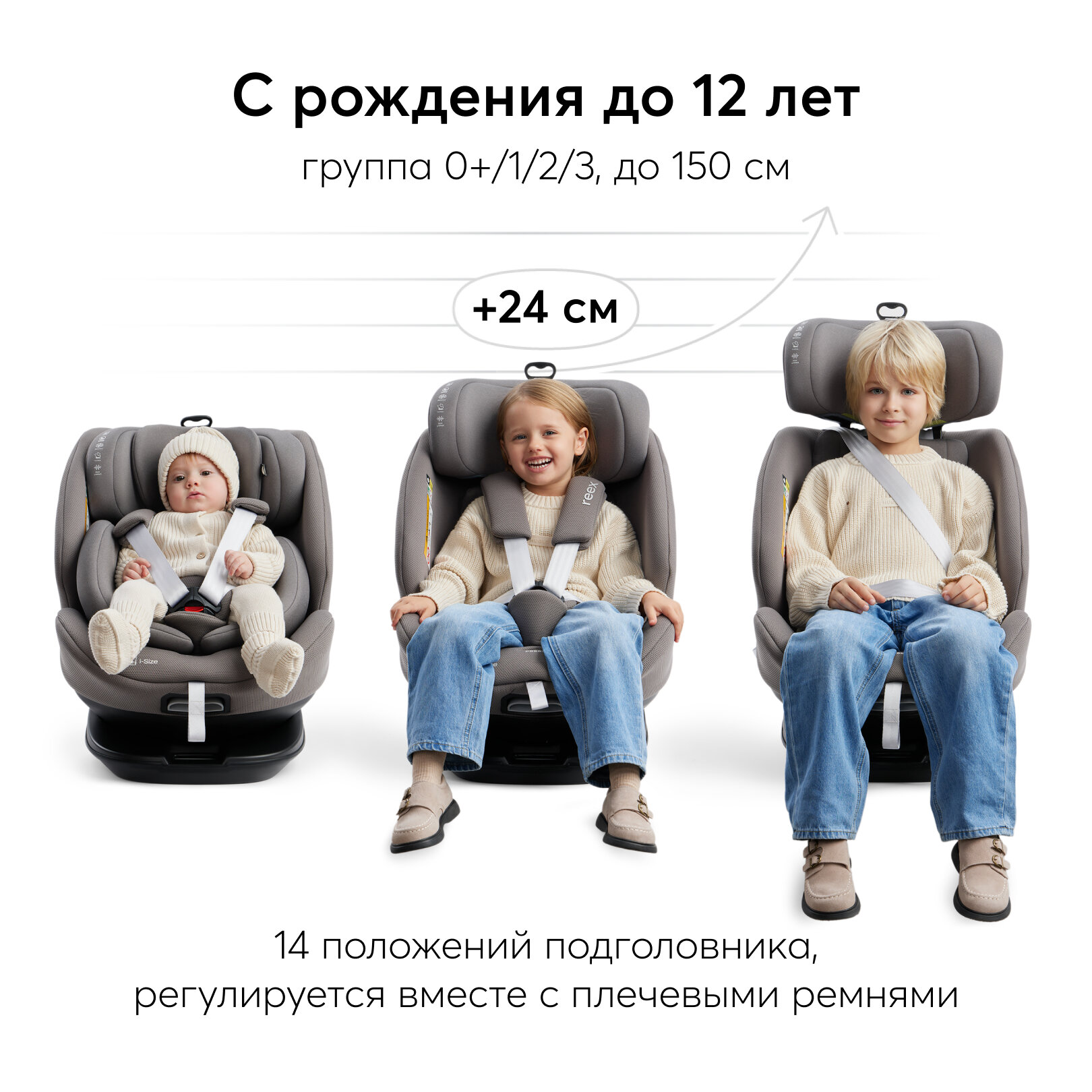 Отзывы на Автокресло детское Reex Happy Baby, поворот на 360, от 0 до 12 лет, 0/1/2/3 (до 36 кг), Isofix, 40-150 см, графитовое