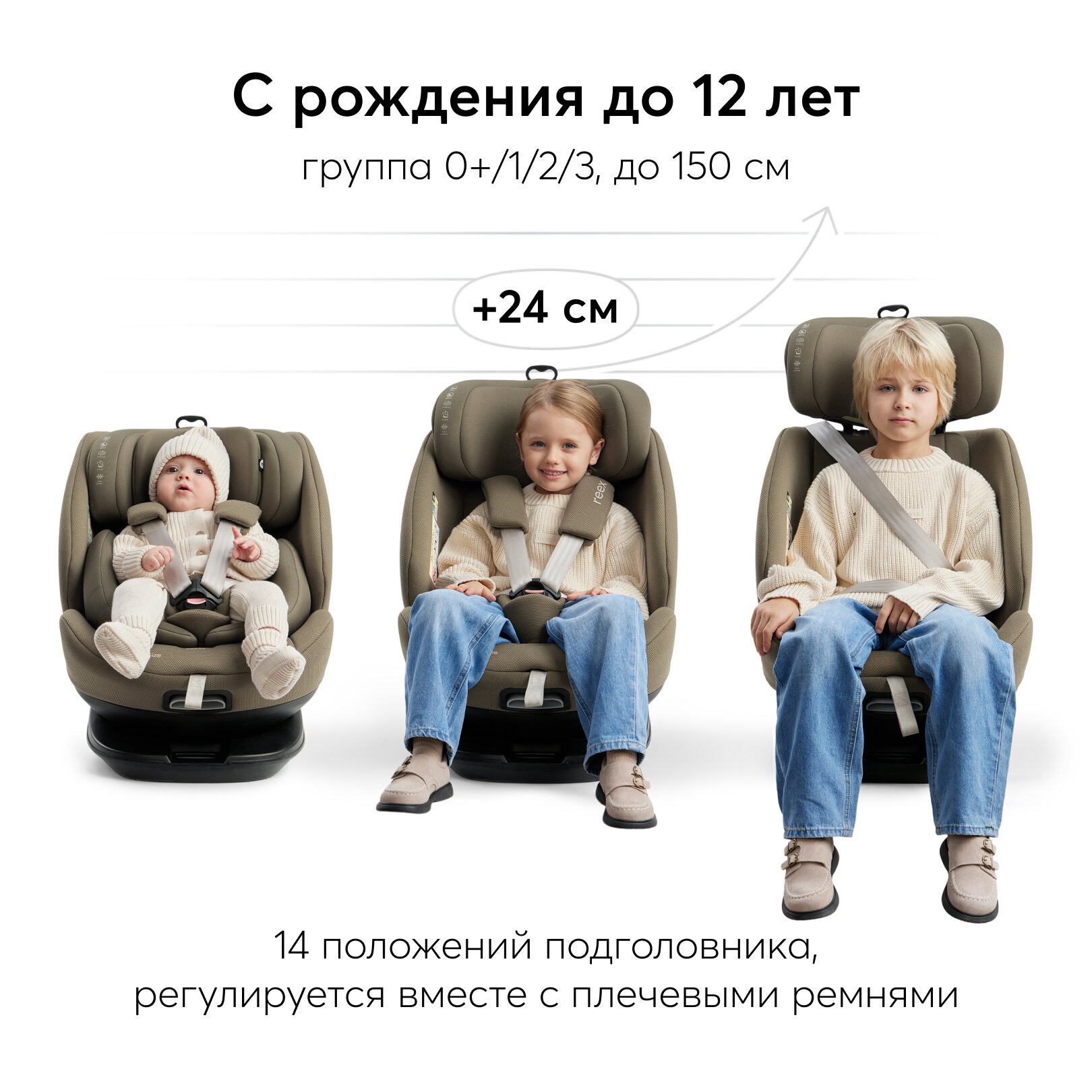 Отзывы на Автокресло детское Reex Happy Baby, поворот на 360, от 0 до 12 лет, 0/1/2/3 (до 36 кг), Isofix, рост 40-150см, оливковое