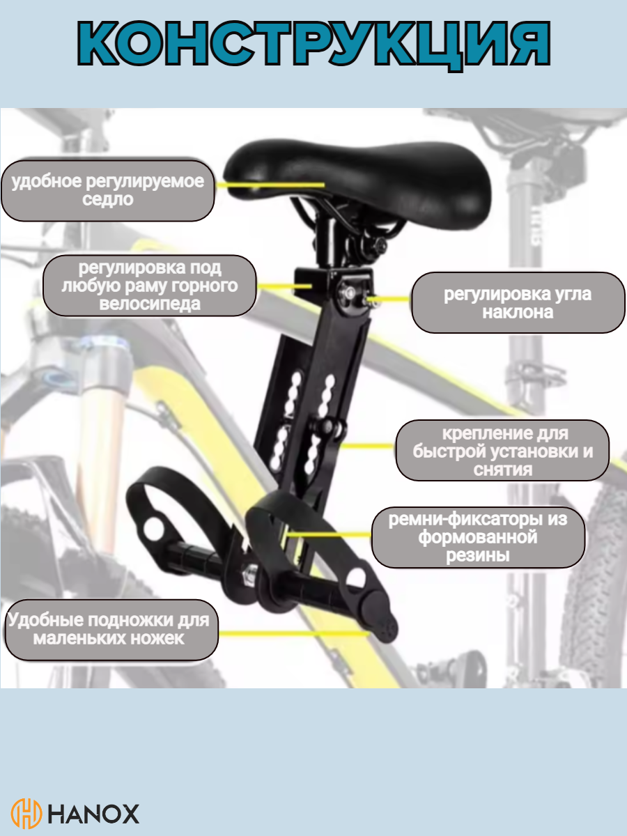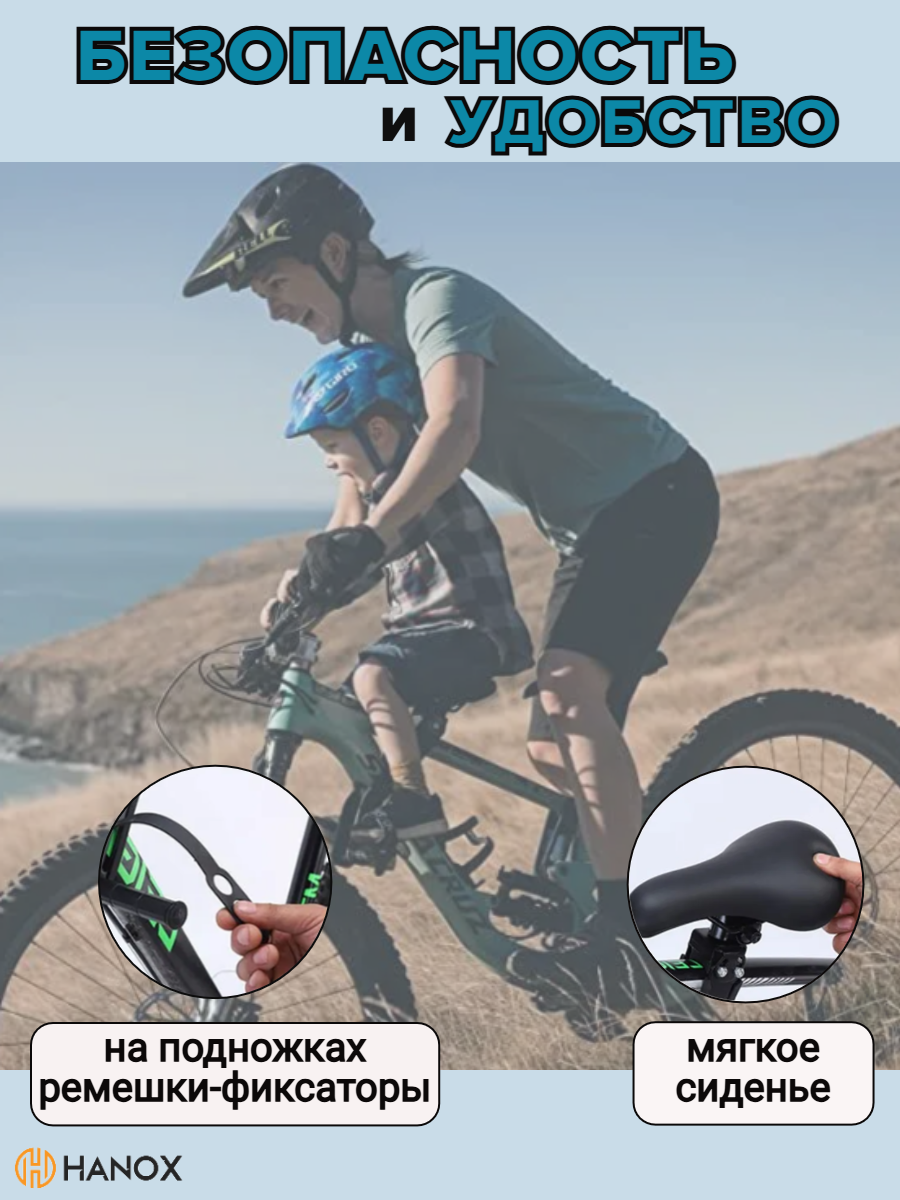 Отзывы на Детское велокресло HANOX, для горных велосипедов, быстросъемное, регулировка подножек, до 22 кг