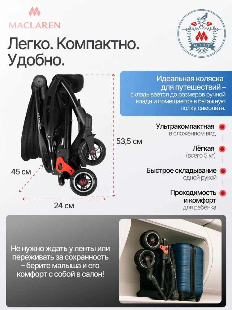 Отзывы на Коляска прогулочная Maclaren Troia / Atom II Black в салон самолета