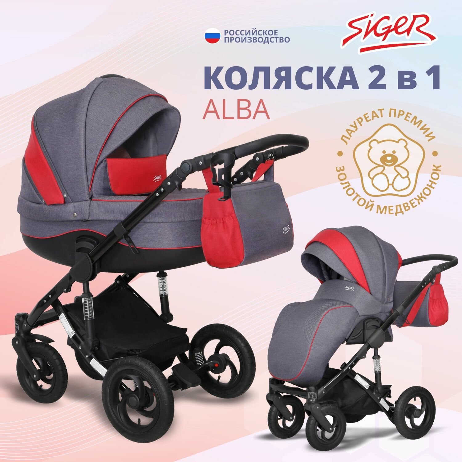 Отзывы на Коляска для новорожденных 2 в 1 трансформер Siger Alba , серый/красный