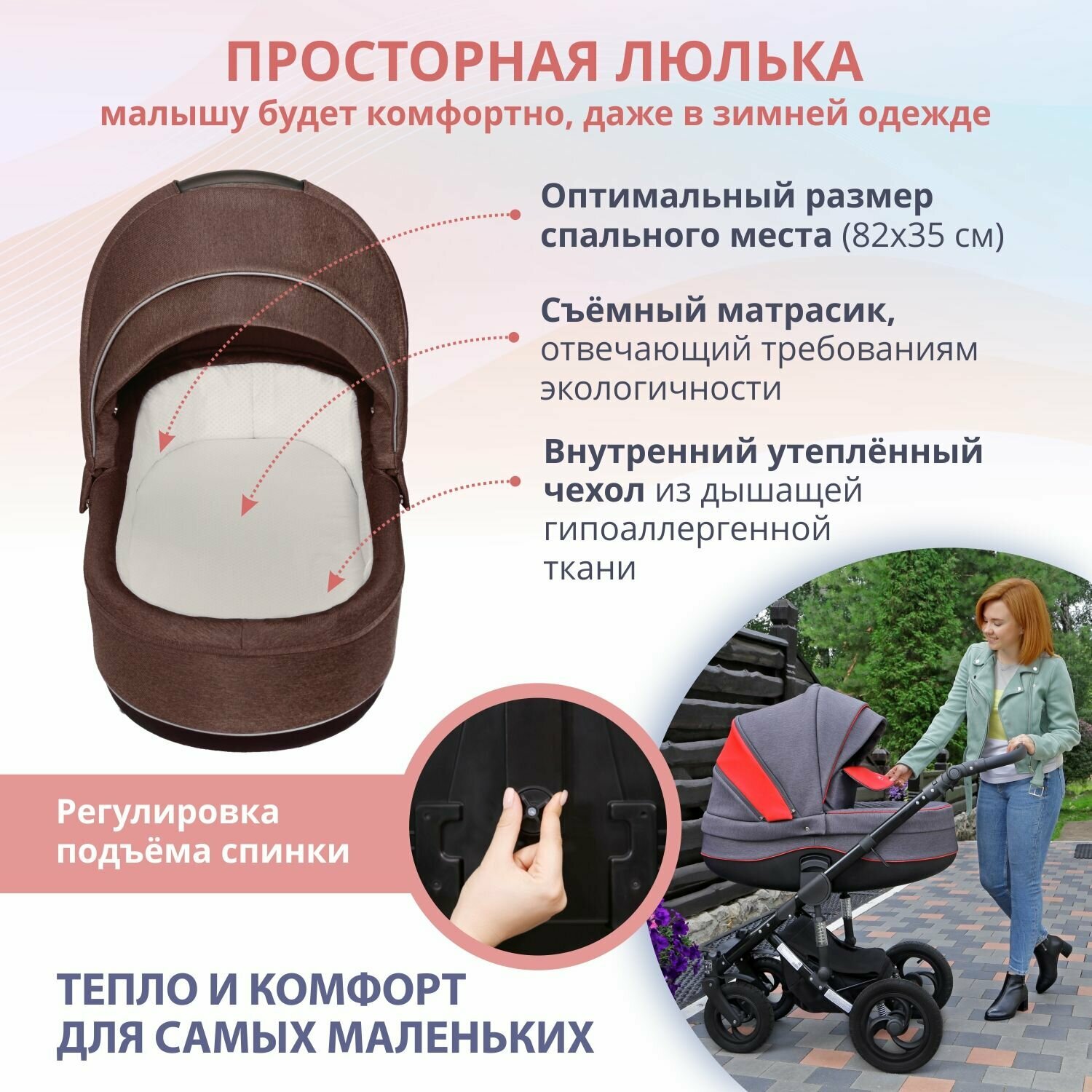 Коляска для новорожденных 2 в 1 трансформер Siger Alba , бежевый/коричневый информация: