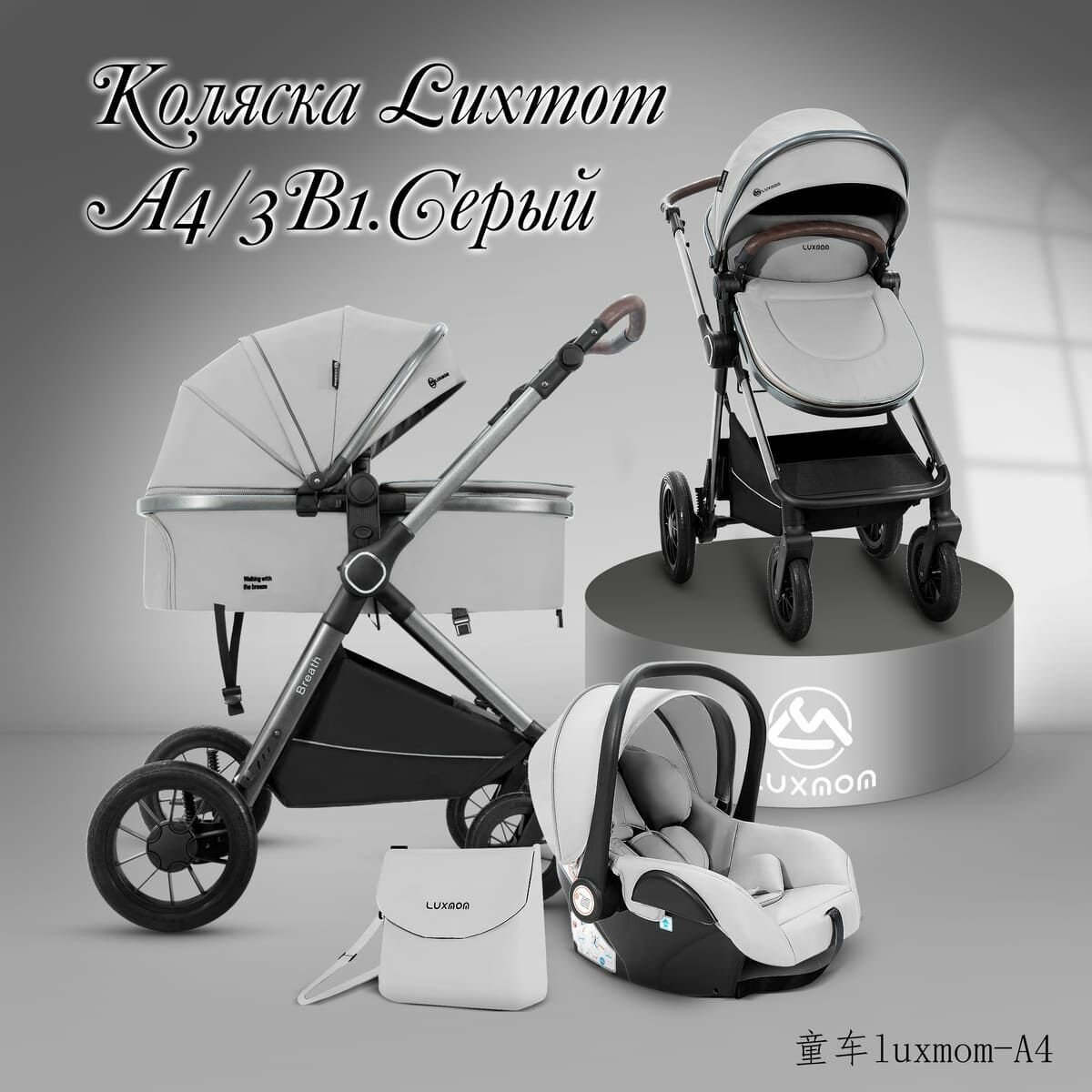 Отзывы на Коляска трансформер 3в1 с перекидной ручкой Luxmom A4 серый цвет