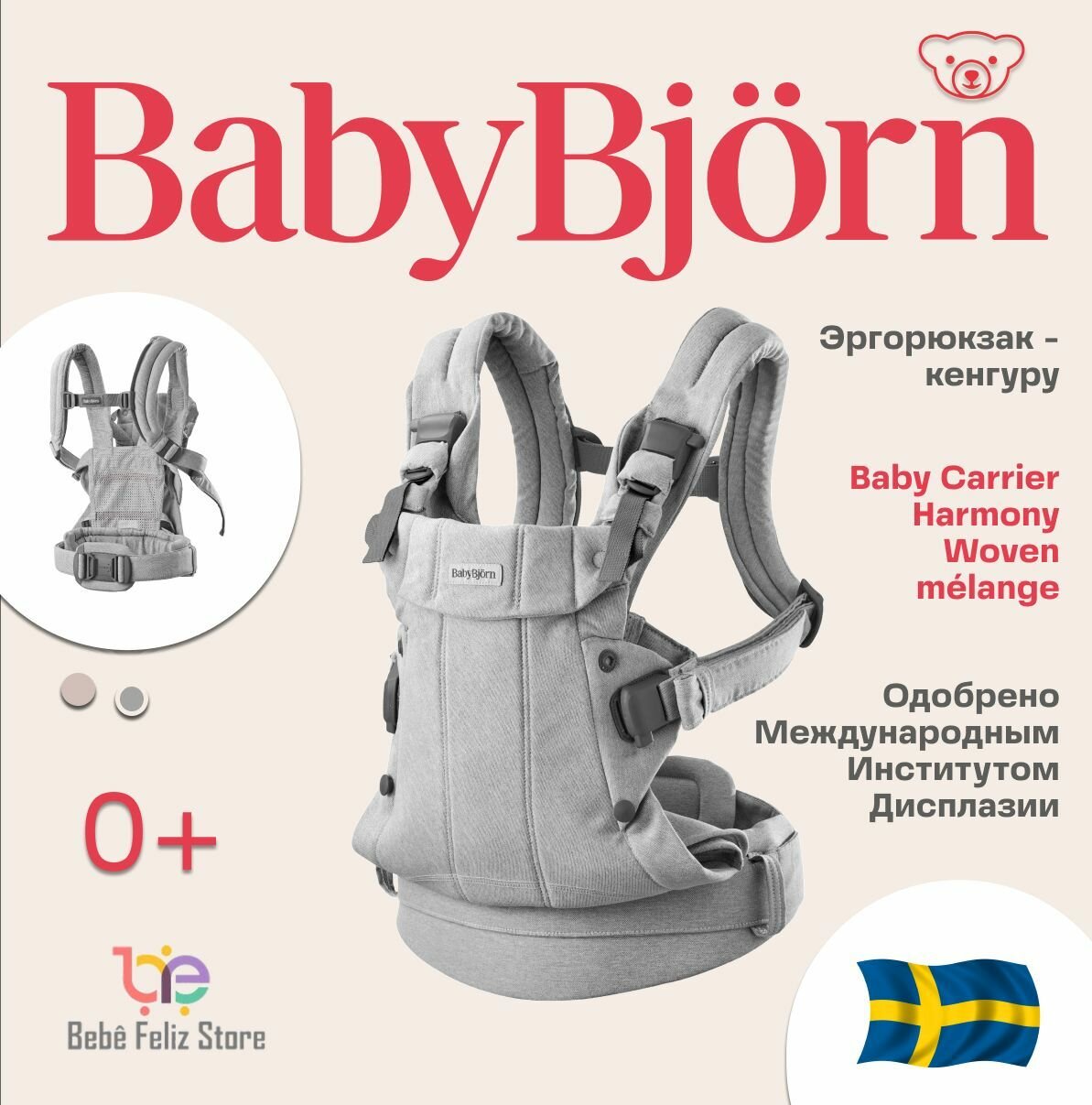 Эргорюкзак - кенгуру BabyBjorn Baby Carrier Harmony Woven цвет Light Beige 34 317 ₽