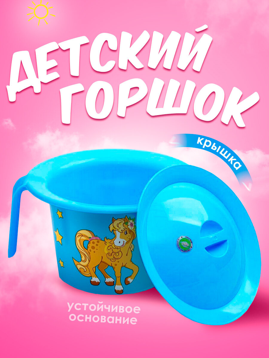 Горшок детский "Кроха" пластиковый с крышкой и декором, (голубой) 392 информация: