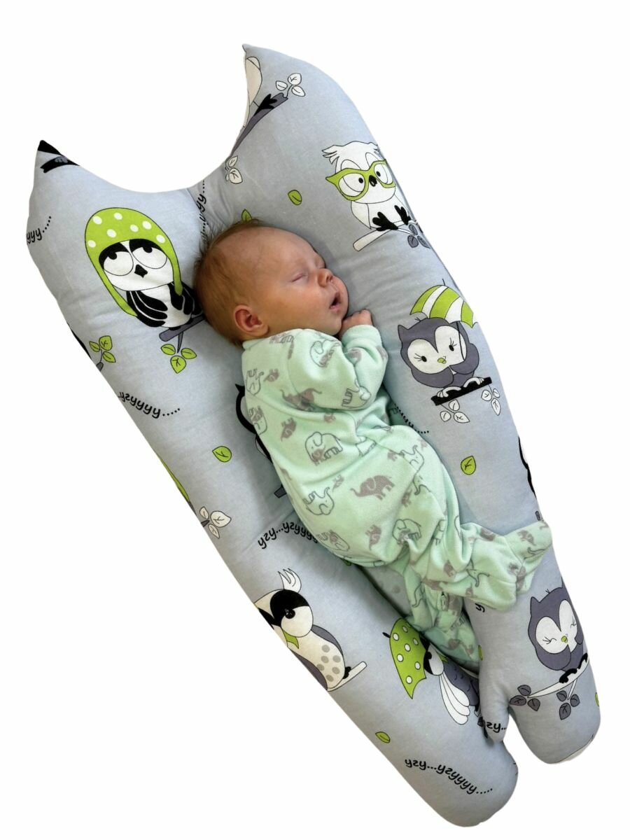 Кокон для новорожденного малыша гнездышко подушка с чехлом Owl&EarlyBird Сова цвет серый 0+ информация: